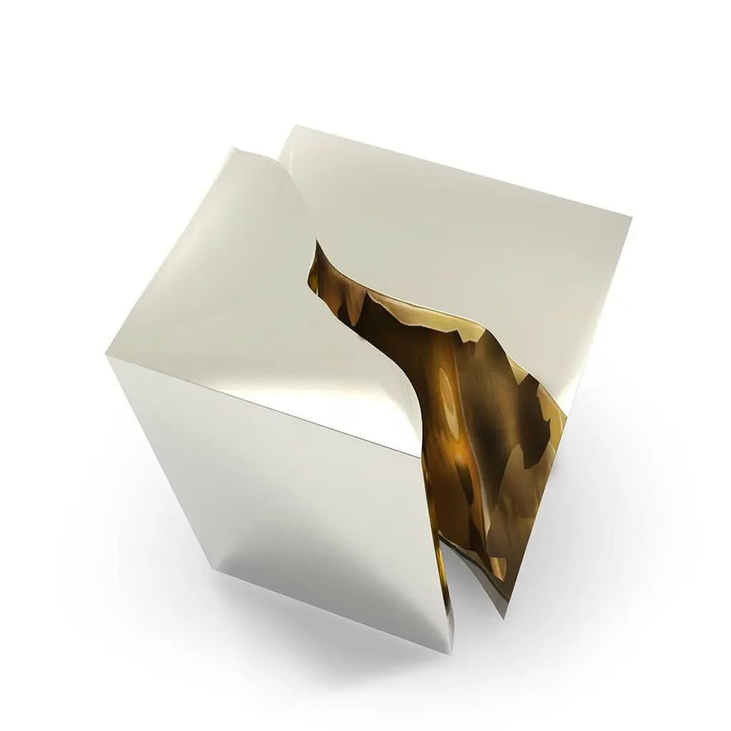 Paradise Side Table In Coated Polished Stainless Steel And Polished Brass