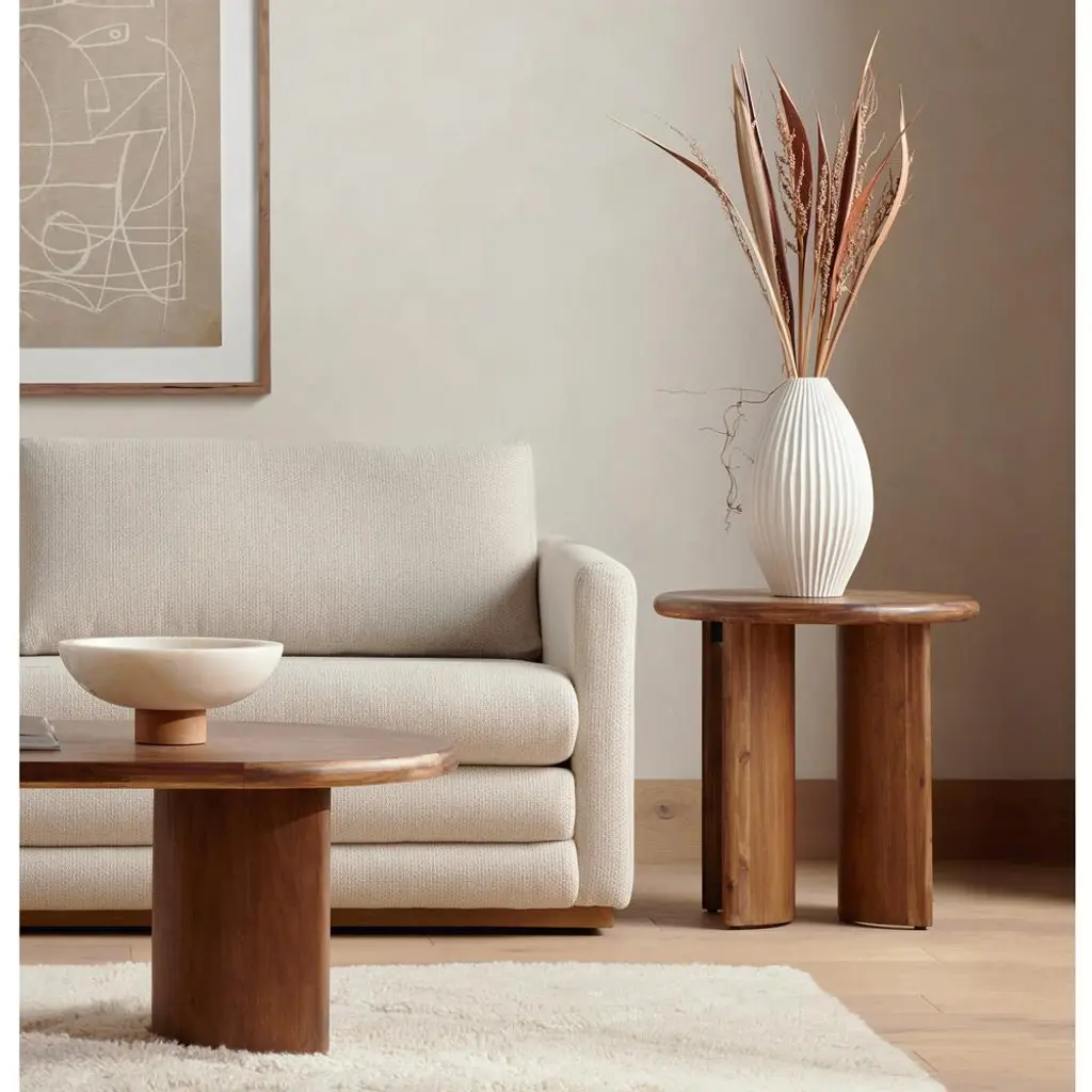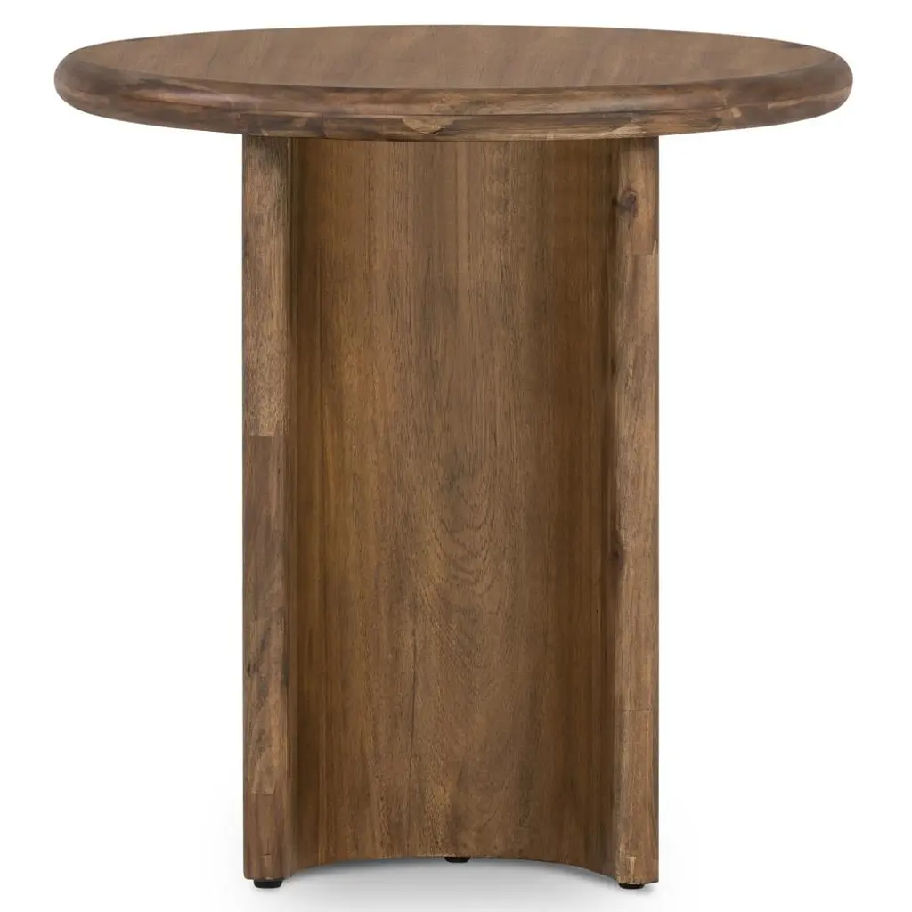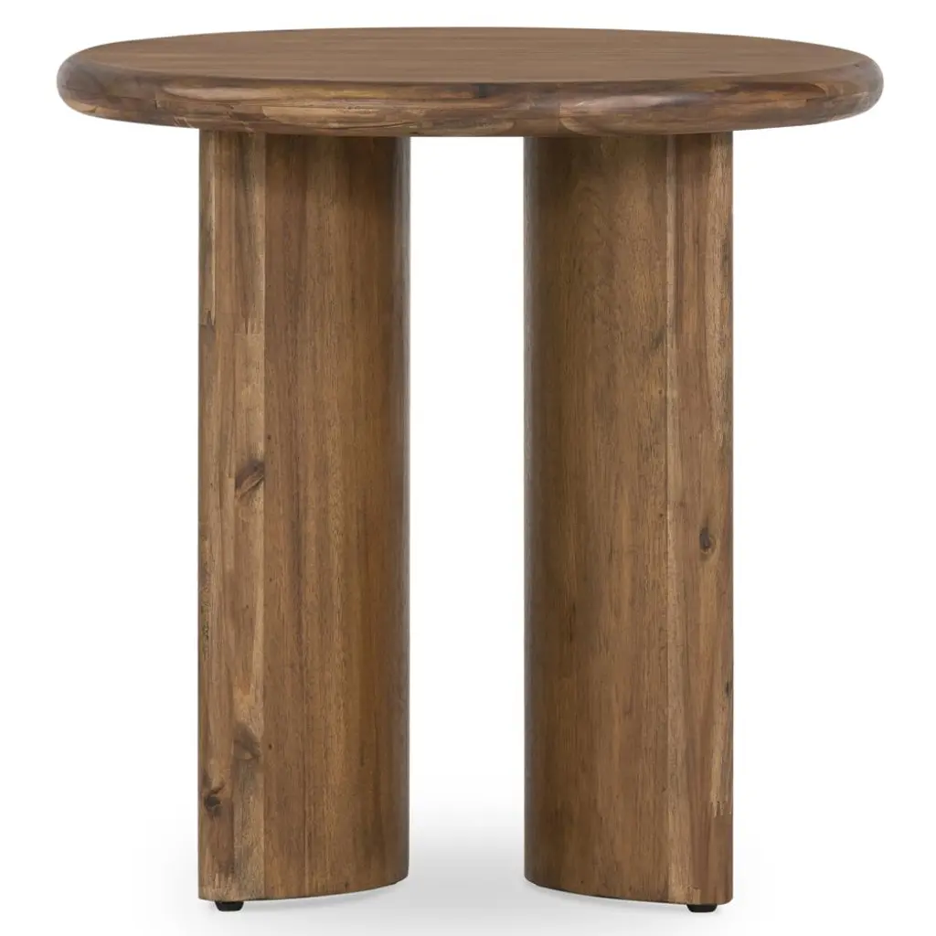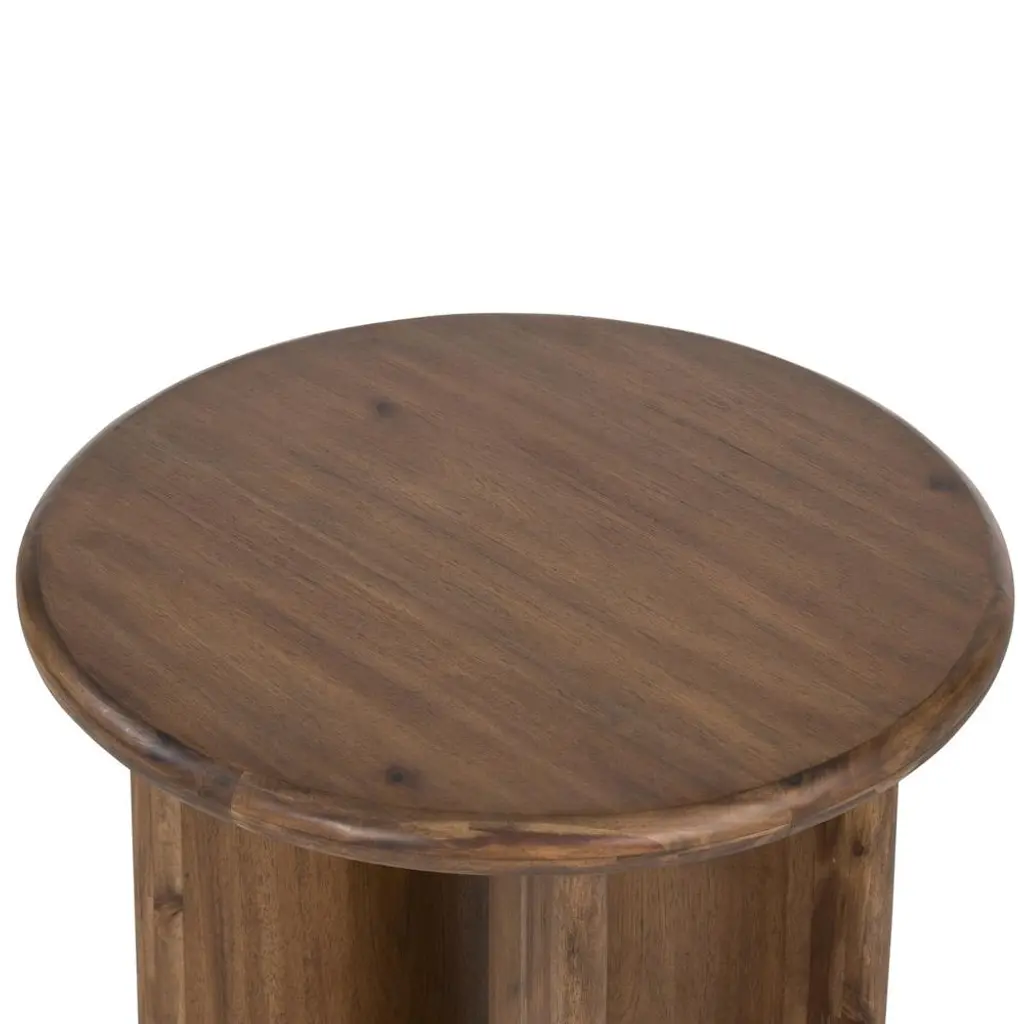 Paris Rustic Lodge Brown Acacia Wood Crescent Base Round Side End Table