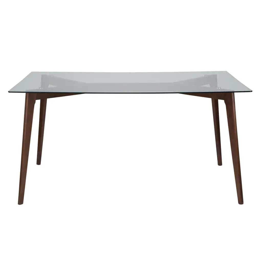 When you want a modern, up to date look for your eat-in kitchen, breakfast nook or dining room give this mixed media standard height dining table a try. The pairing of a clear glass top with the solid beechwood frame gives this contemporary rectangular dining table a cultivated look that will match any decor. The transparent glass top lends an open airy feel to your space and contrasts beautifully with the dark espresso finish. The sturdy beechwood frame and 8mm thick tempered glass top are ultra strong to hold up to 330 lbs. static weight capacity. Fixed glides on the feet will protect your flooring from damage due to accidental movement or when you want to rearrange your space. No need to worry about spills, this table cleans up easily with a solvent and water based cleaner such as foam to leave this piece looking pristine after every meal. Assembly is under 30 minutes with the included tools for quick set up and use. Gather family and friends around this chic, rectangular dining table that can seat up to 6 people for a great meal, game night or to just hang out.