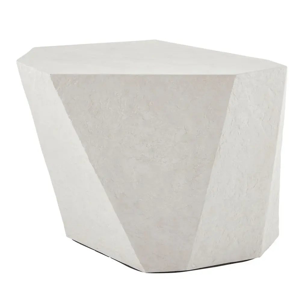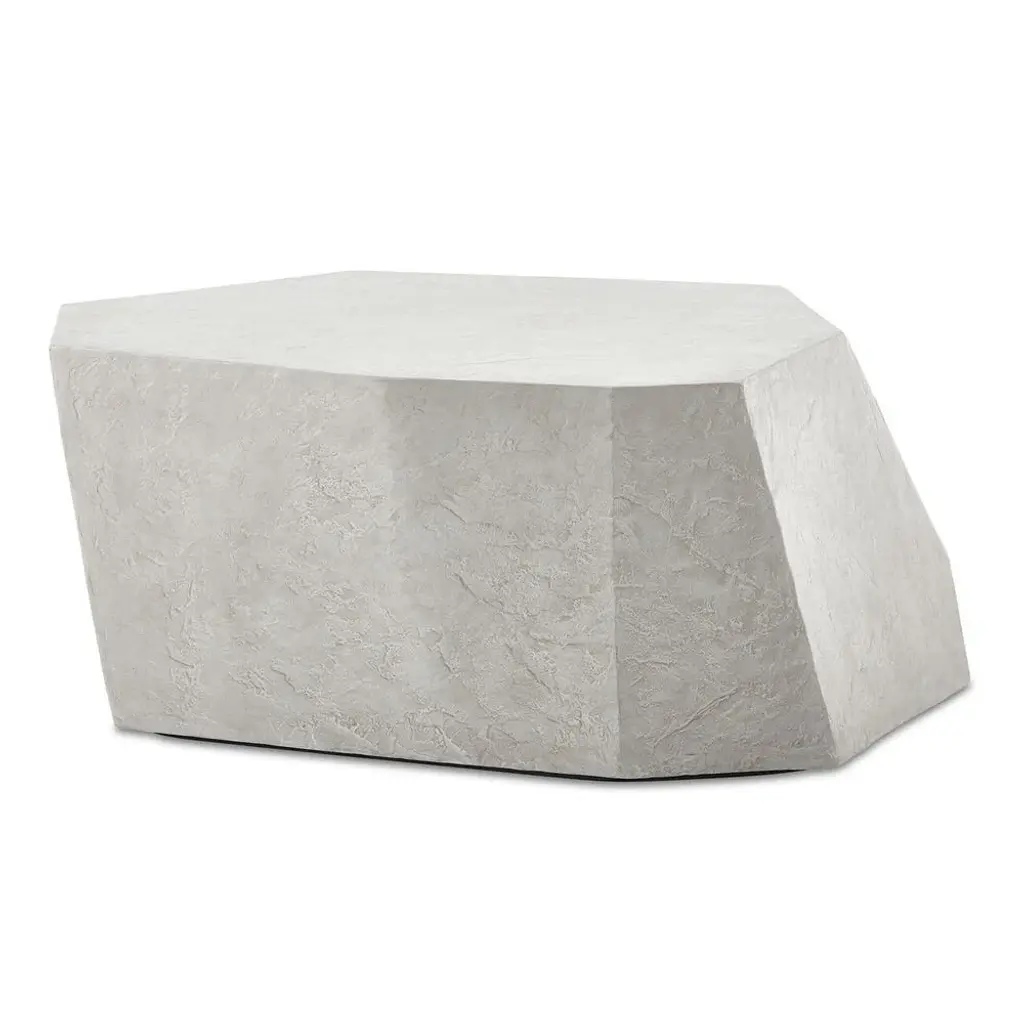 Modern and bold in an asymmetrical faceted design, the parra coffee table presents as a beautiful piece of art. Made of glass reinforced concrete for everlasting durability and finished in natural limestone giving it a smooth and elegant appearance.