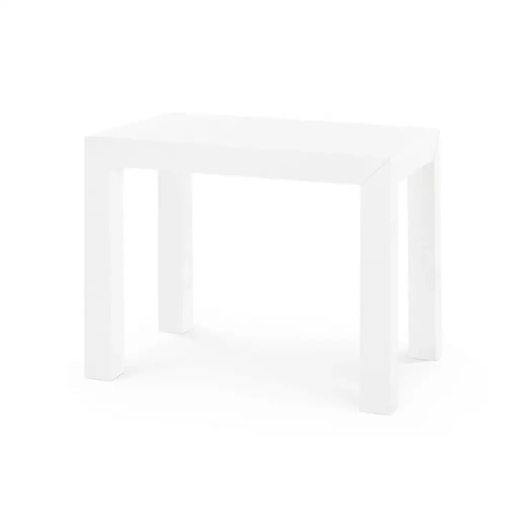 The Parsons Collection exemplifies Villa & House’s commitment to bringing luxury to life through timeless silhouettes, unique materials, and unmatched craftsmanship. In the Parsons Side Table, a classic shape is reimagined through a contemporary lens, with stout lines and structured proportions giving its pared-down profile a splash of modern personality. In lieu of ornamentation, the piece showcases a sumptuous grasscloth finish in chiffon white, sealed with lacquer for subtle shine and layered tactility. The Parsons’ sophisticated simplicity and uniform color make it the perfect canvas for personalized decor and display. Dress it up with gilded accents in a lavishly decorated space, or embrace its minimalism for modern schemes. It’s just waiting for your creative touch.