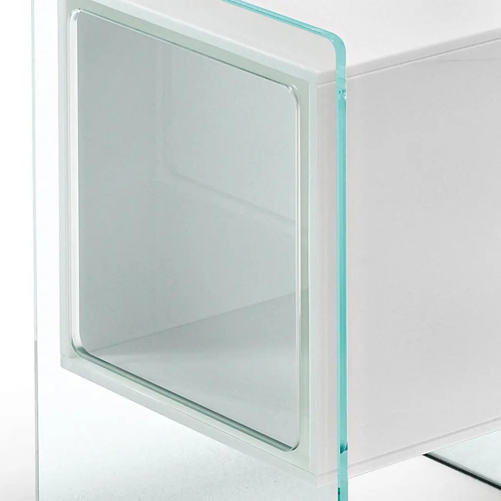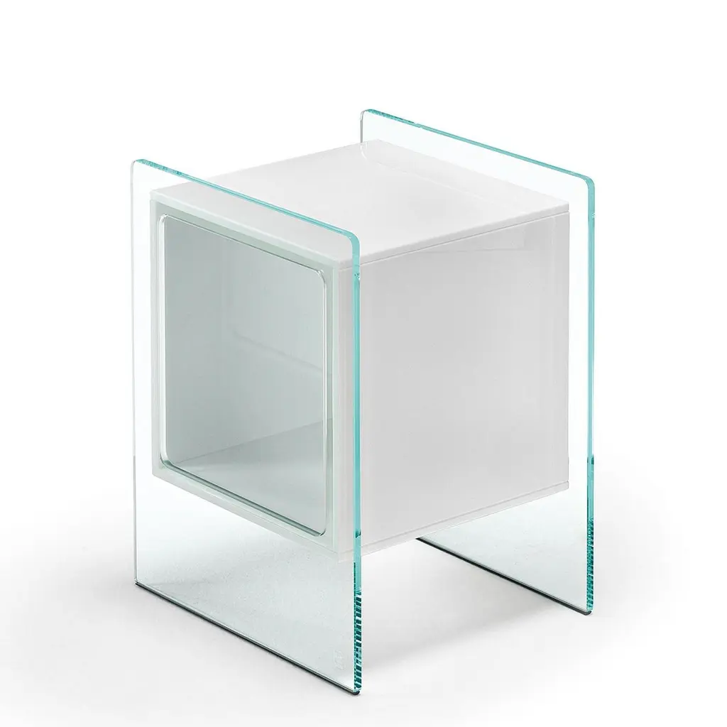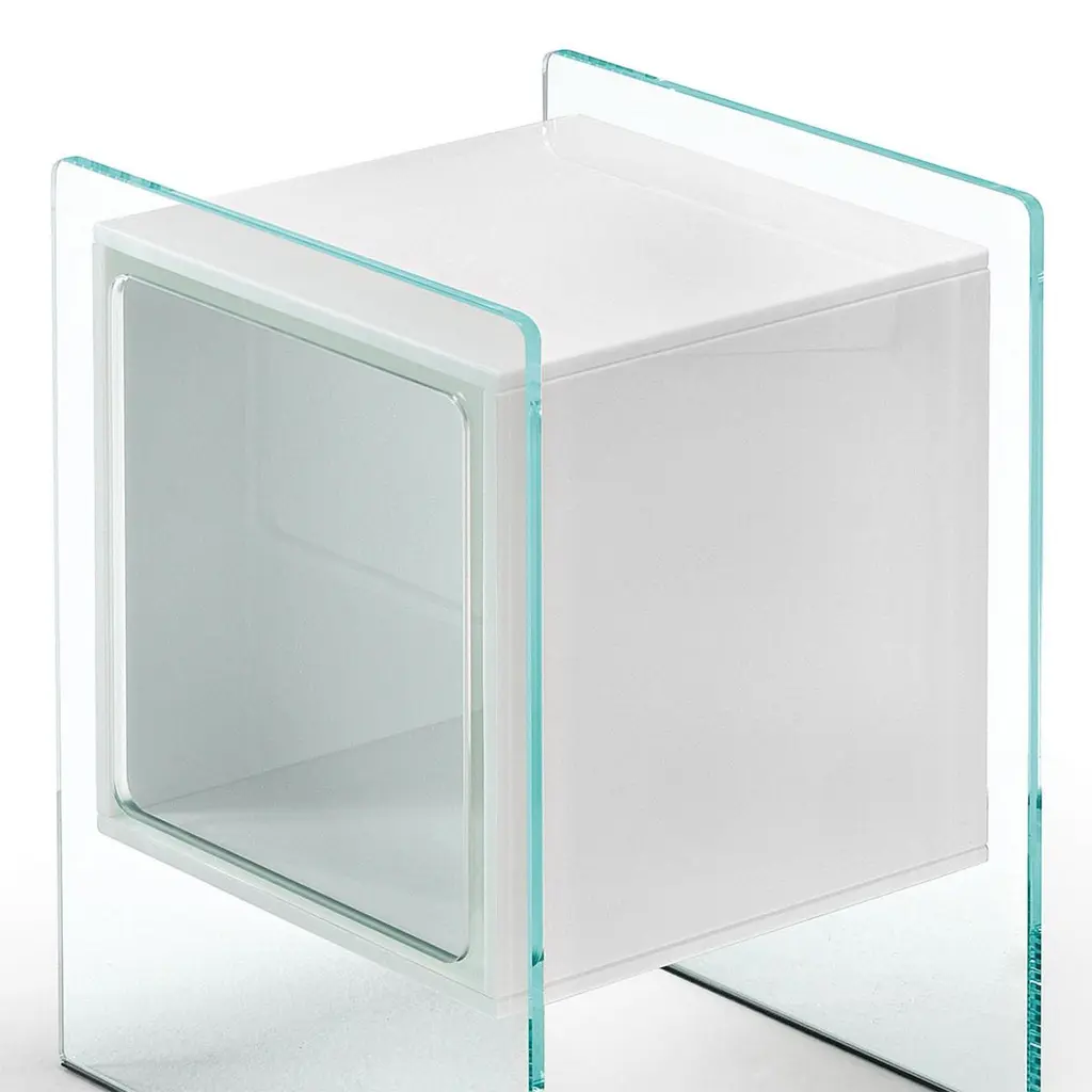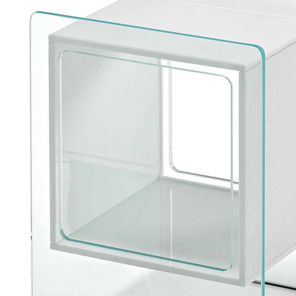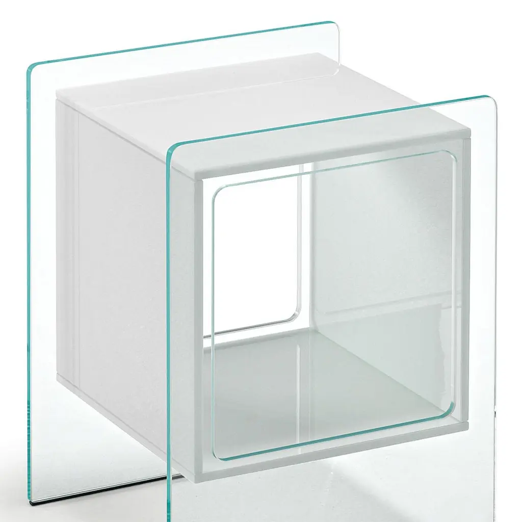 Side table parts square white with extralight glass structure and with opal white glass square glass parts.