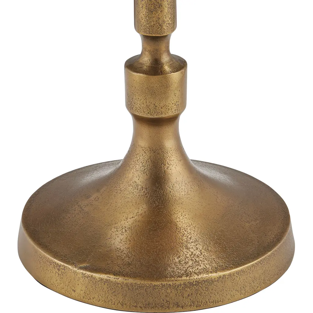 The Pascal Accent Table with its rugged masculinity is a nod to the machine age, its vintage brass finish providing its tool-like shape with an added dose of handsomeness. This is one of those small tables that can be sprinkled around a space to bring a rough luxe appeal regardless of the style. The warmth the finish brings and the textural interest the surface provides will make this a favorite decorative accent.