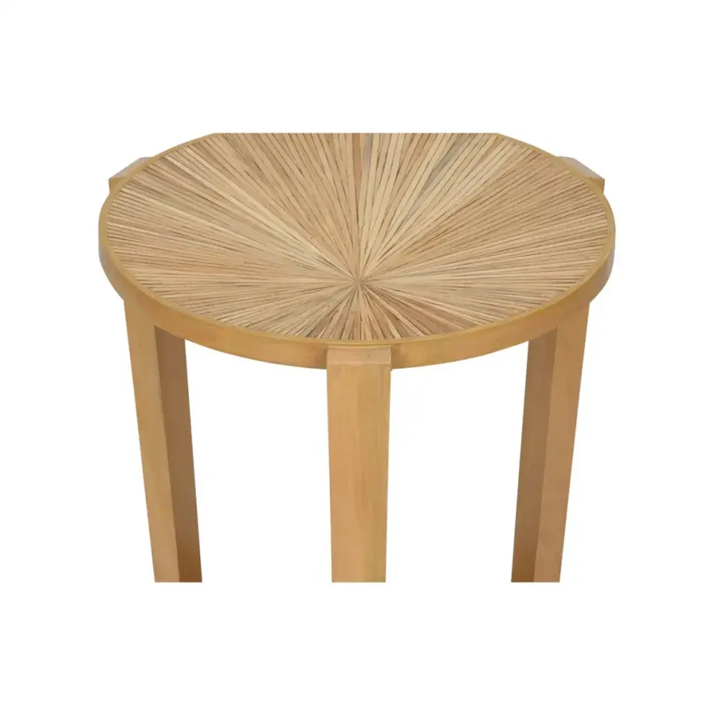 Small and minimalist in style, the Pasha Side Table is two-tiered for those small spaces needing extra storage. The top is hand-inlaid in rich natural rattan in an off-centered sunburst pattern. It's a piece that brings the beauty of nature into the home.
