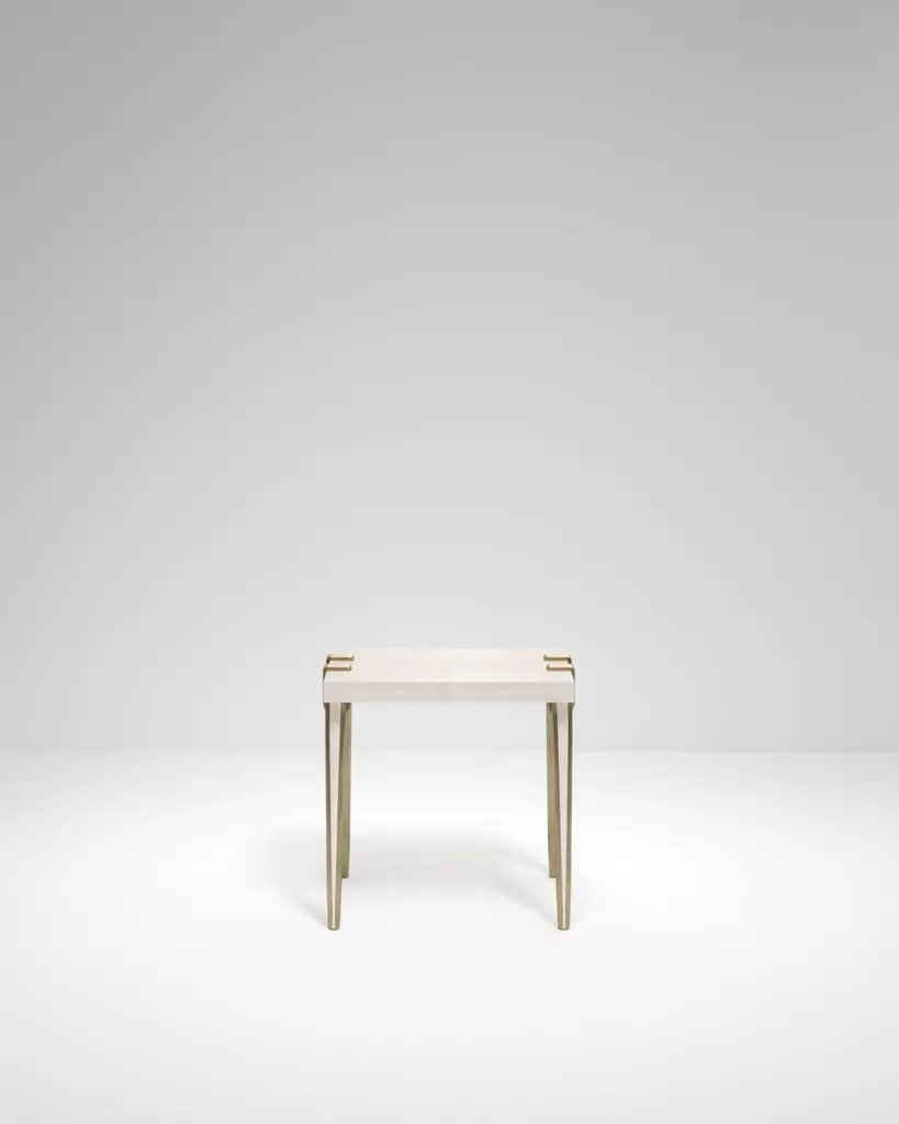 The Paris based label has distinguished themselves since their launch, with their iconic use of shagreen mixed with brass and other exotic materials. All furniture is handcrafted by skilled artisans, ultimately making each piece unique, designed in Paris and produced in the Philippines.The Sonia side table is an iconic Augousti design, showcasing the exquisite craftmanship behind the brand. The shagreen inlaid legs clasp onto the side of the patagonia rectangle top. This piece is a nod to the Art-Deco period while remaining contemporary in it’s design. Available in different finishes and as a console and desk, see images at end of slide. Custom sizing / finishing available in requestMeasures: 60 x 35 x 60 cm.All R & Y Augousti pieces are handmade by artisans, ultimately making each piece unique. Custom color/sizing available on request. Wipe clean with soft dry cloth.Acclaimed design duo Ria & Yiouri Augousti have established themselves since the 1990s as pioneers of modern-vintage style through their luxurious Art Deco inspired collections.The Paris based label has distinguished themselves since their launch, with their iconic use of shagreen mixed with brass and other exotic materials. All furniture is handcrafted by skilled artisans, ultimately making each piece unique. All shagreen-covered items should be kept out of direct sunlight, color variants may occur on the stingray and other exotic finishes, but this showcases the Parisian label's commitment to creating authentic luxurious products using natural components.
