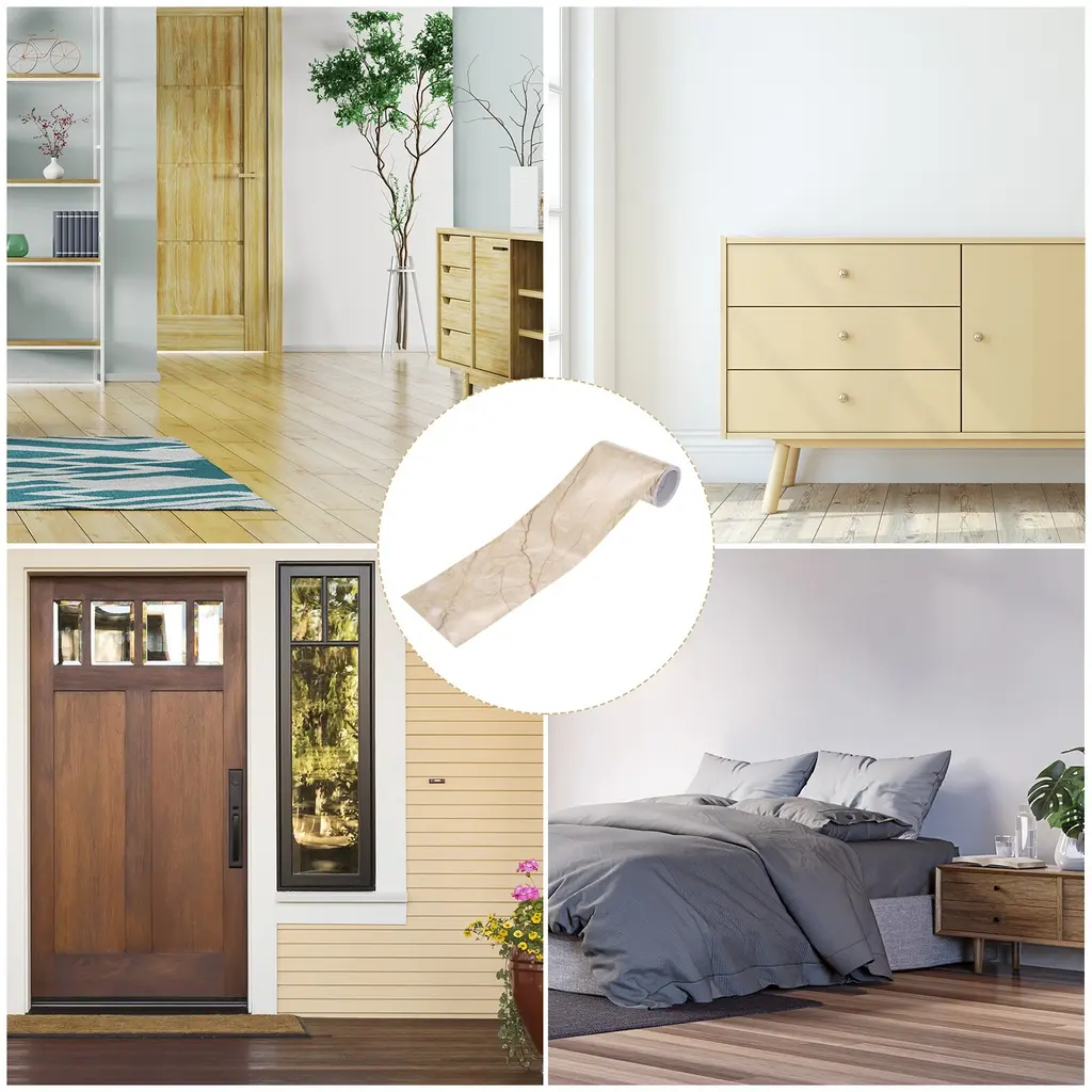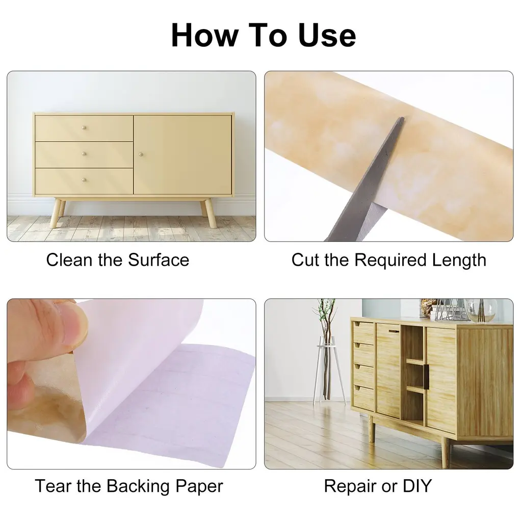 Description:Easy to Install: The wood tape roll comes with adhesive on the back, no additional glue or adhesive, and can be stuck directly onto the surface, greatly simplifying the installation process.Design Versatility: Several marble textures and colors are available to suit different decorative styles and individual requirements.Wide Application: Patch wood grain repair tape is suitable for furniture renovation, cabinets, doors and windows, floor repair, decorative projects, and daily DIY.Specification:Package: 1 Pcs x Patch Wood Grain Repair TapeSize: 5 m x 10 cm/16 ft x 4 inch (L*W)Material: PVCStyle: Golden Silk
