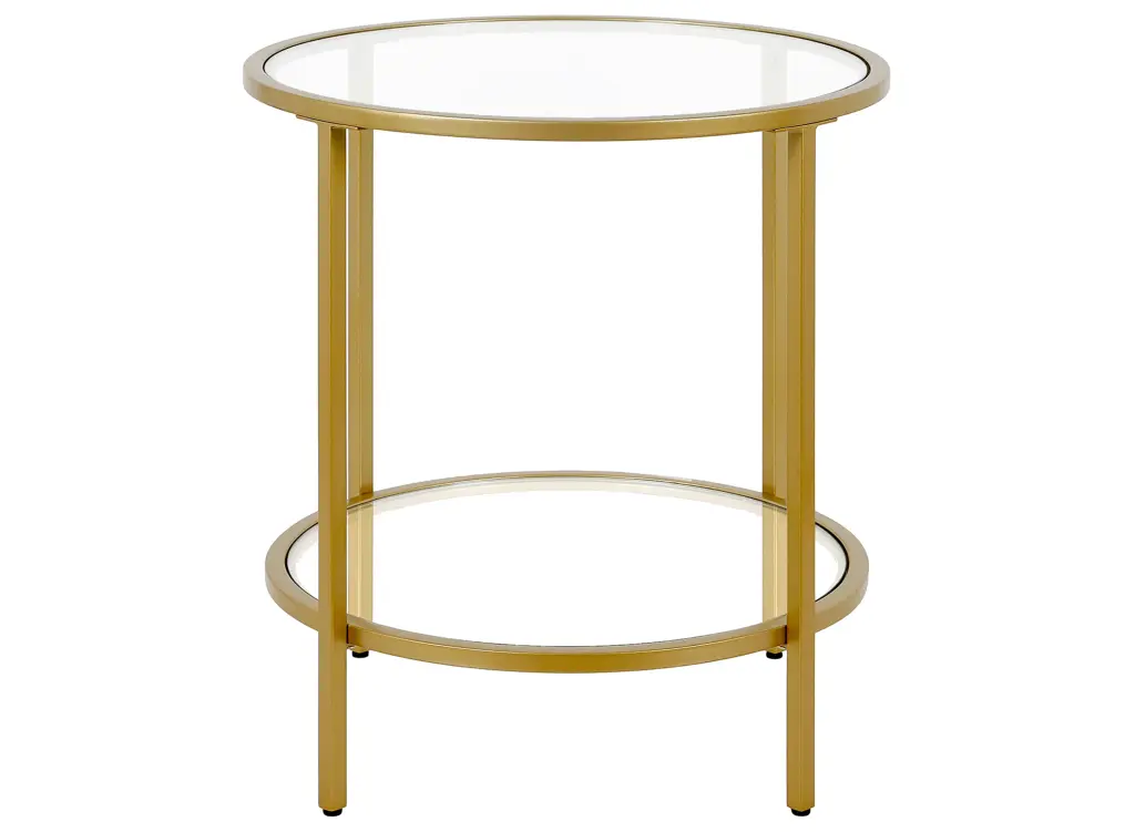 Cultivate effortless modern style with the clean lines of this Paulino end table. Its rich neutral tones complement any color palette, while the glass top and shelf create the perfect backdrop for a magazine-ready display. This compact side table creates stylish storage possibilities in any room.