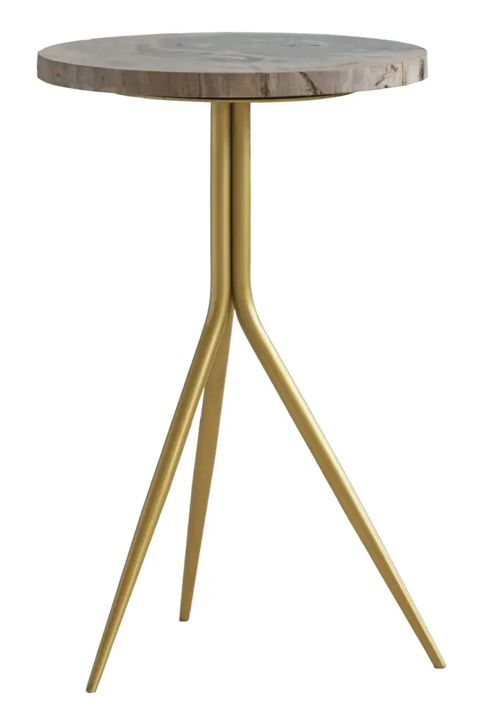 Bring bold retro appeal to interiors with the Pawn Accent Table from Renwil. A four-legged iron structure assembled in India, it uses rounded, iron-plated caps on each leg, their bright surface contrasting well with the more subdued texture of the legs and tabletop above. The edge of the circular table bevels upward, creating a touch of visual complexity and providing retention for small items.