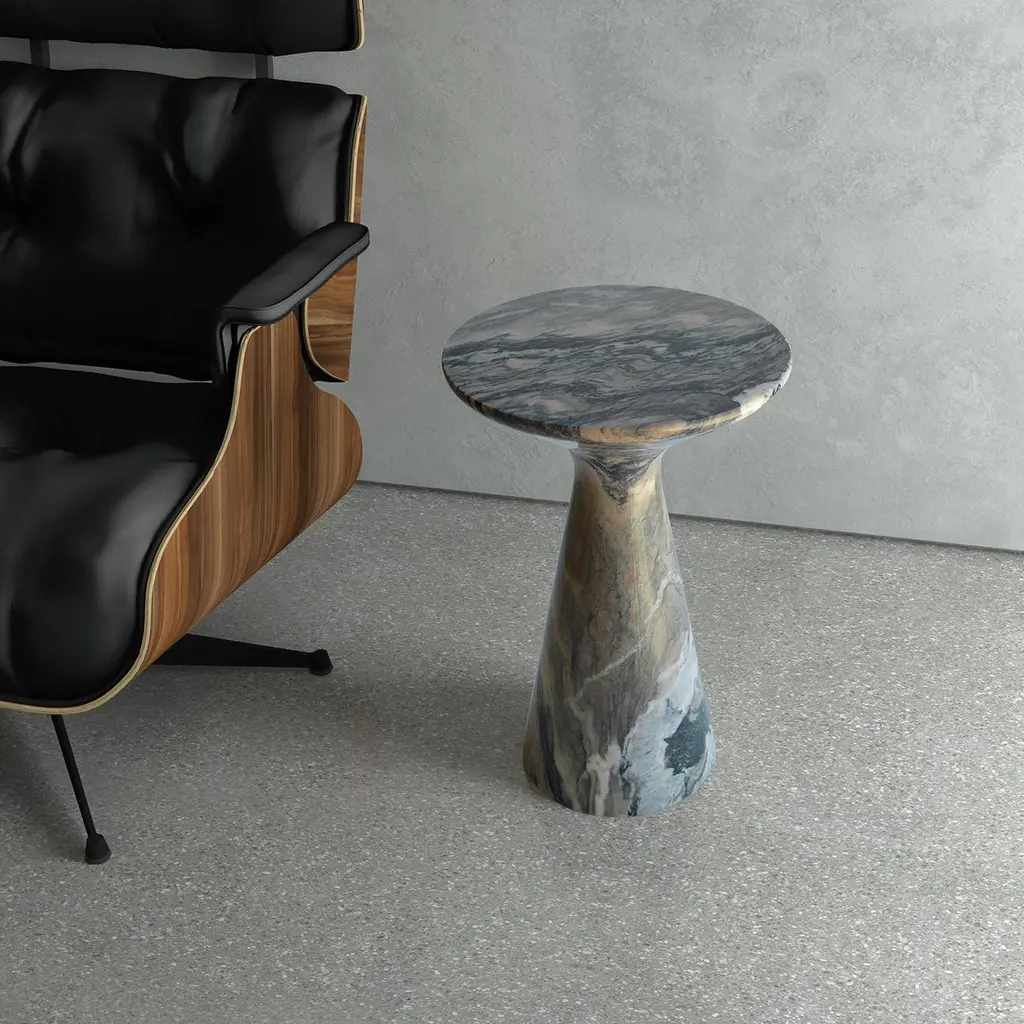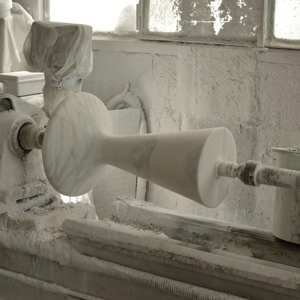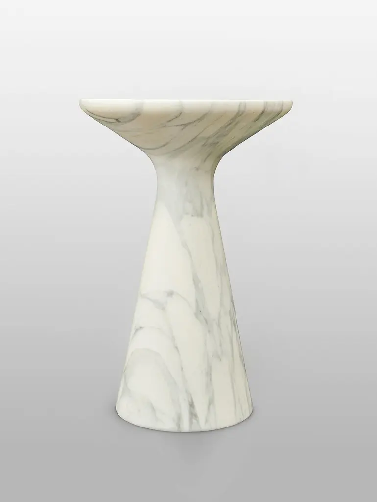 Masterfully crafted from a single block of marble, Pawn expresses all the complexity of natural stone colors with a contemporary and minimal look.The veins runs on the surfaces of Pawn defining different patterns that change depending on the orientation and curvature. The result is a natural art piece only possible thanks to an extraordinary process of craftsmanship. Pawn is manually finished at the lathe and finished with a marble color enhancer.Pawn side table is 100% crafted in Italy.