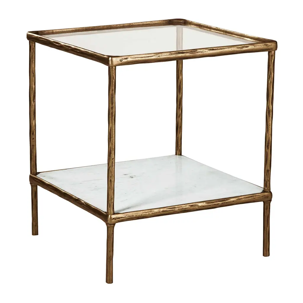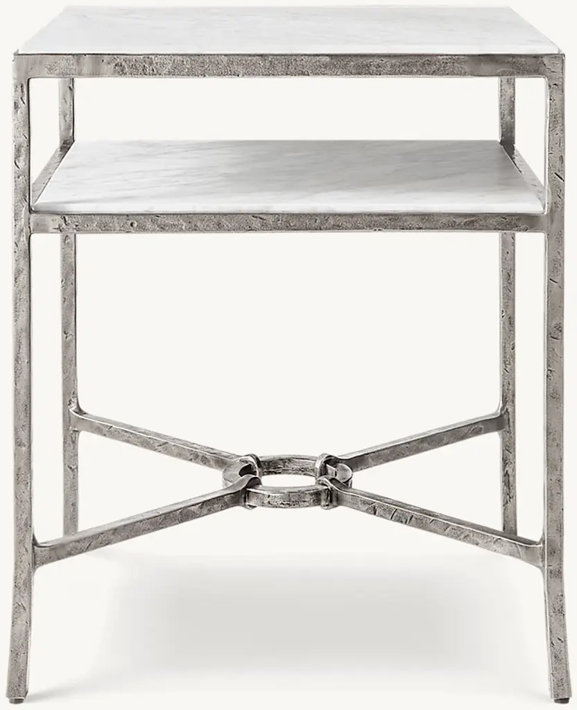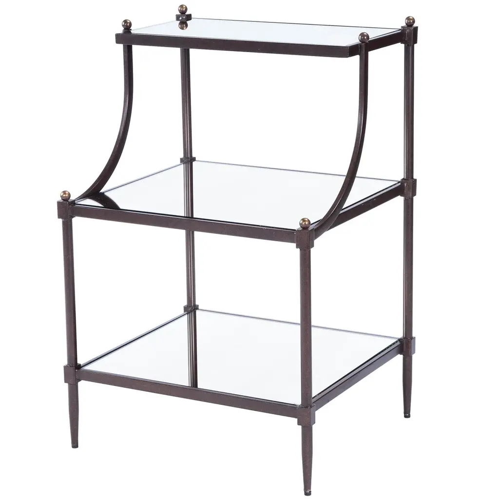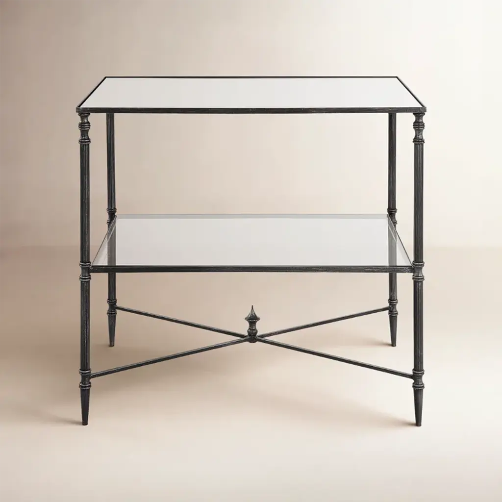 This table is a perfect union of iron and glass, antique silver and two clear shelves create a visually light footprint. A simple, minimalist build means this accent table can lend itself to many different room layouts and designs.