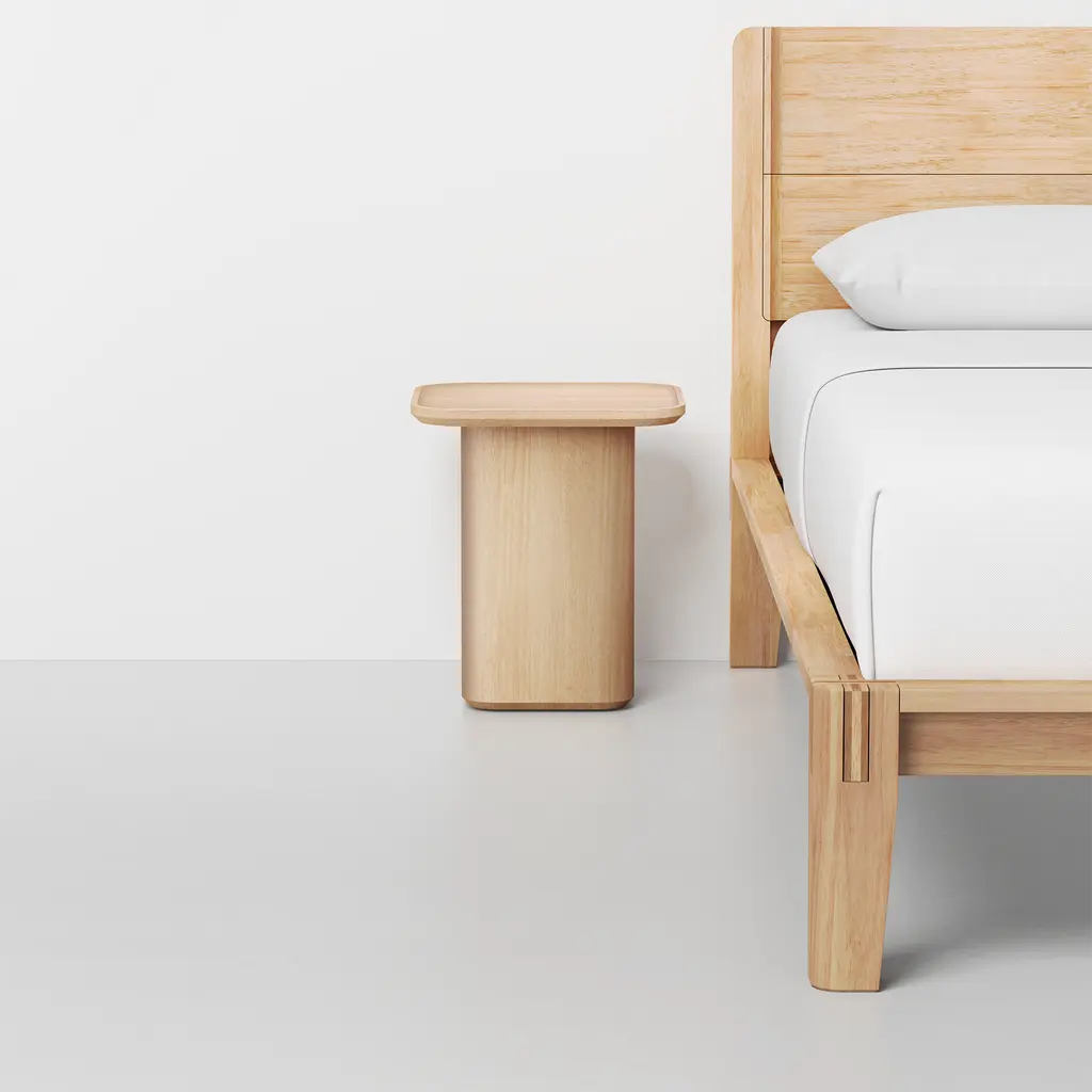 Solid wood minimalism. The Pedestal Side Table brings versatile surface area and sculptural refinement to the home.