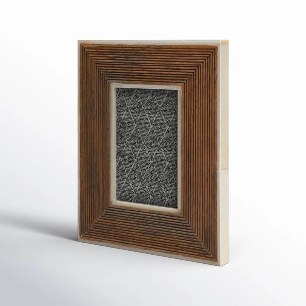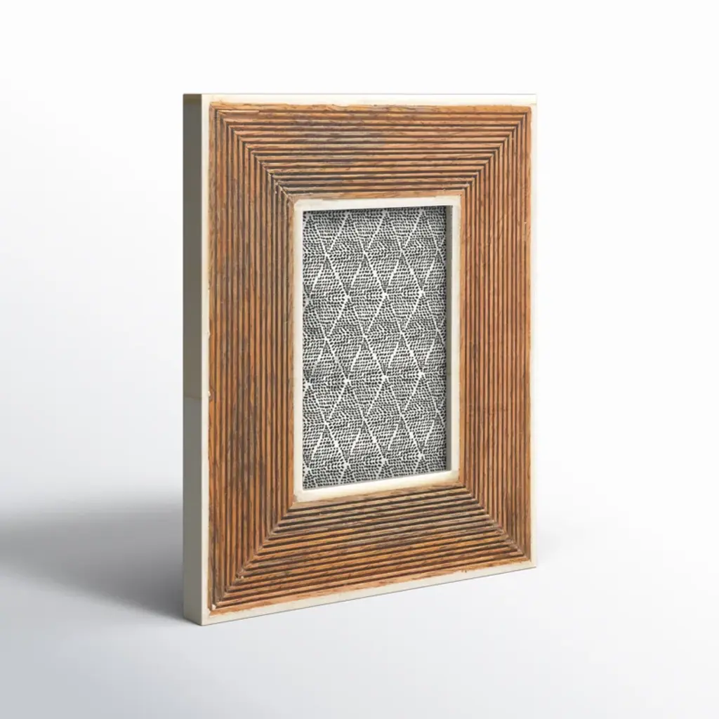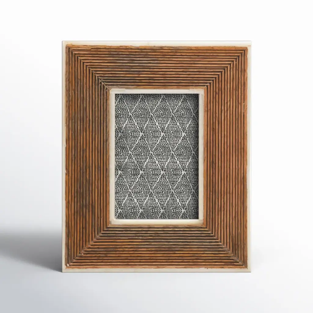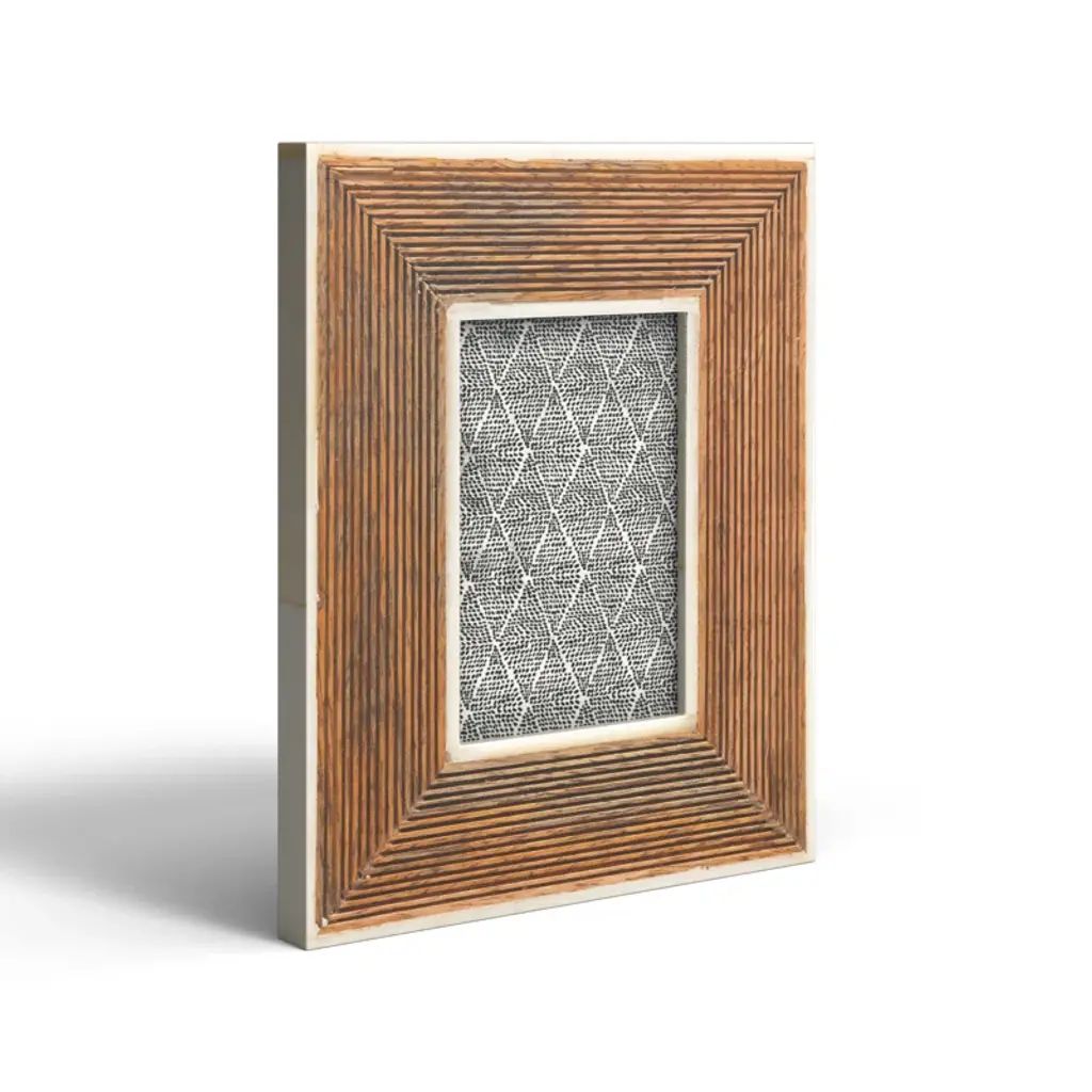 This photo frame is perfect for displaying your favorite memories. Hand-carved, this frame is made out of mango wood and features a ribbed pattern with a bone edge that matches any décor style. Looks great placed on shelves, side tables, and dressers for an easy decoration