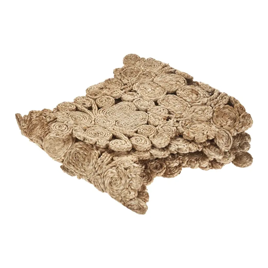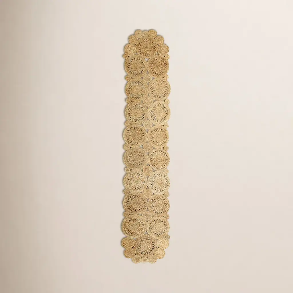 This natural jute is featuring completely natural jute table runner. This table runner is completely intricate in design and style. It has a versatile unique pattern that ingeniously blends with most simple or elegant of one’s dining room settings. This is hand-made, woven and braided created 100% jute, it is sturdy and durable. It is at its largest width and there are also coordinating placemats (sold separately). This jute truly is a must have for your home!