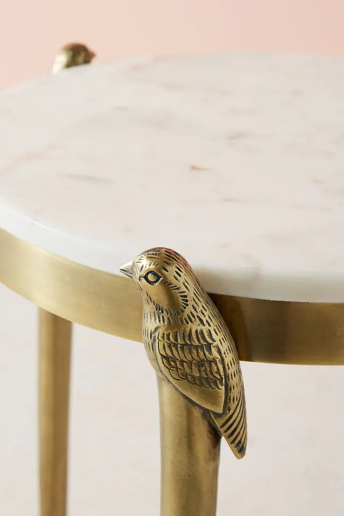 Antique brass birds perch upon the columns of this marble-top piece, keeping watch over your living room while adding cheer to its decor. Our furniture specialists are at the ready to help you find the right fit for your lifestyle and needs. Give us a call at 844.599.2557 from 8 a.m. - 11 p.m. ET, Monday through Saturday. For aesthetic advice and tips to help decorate your space, email homestylist@anthropologie.com.