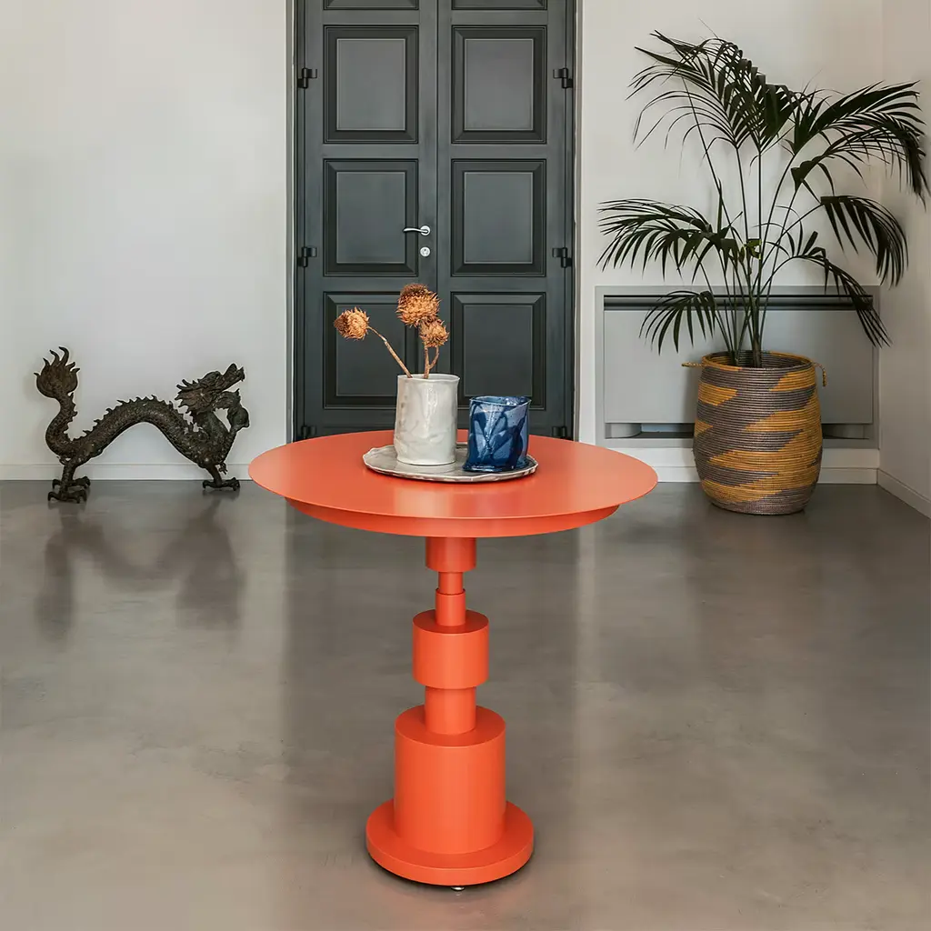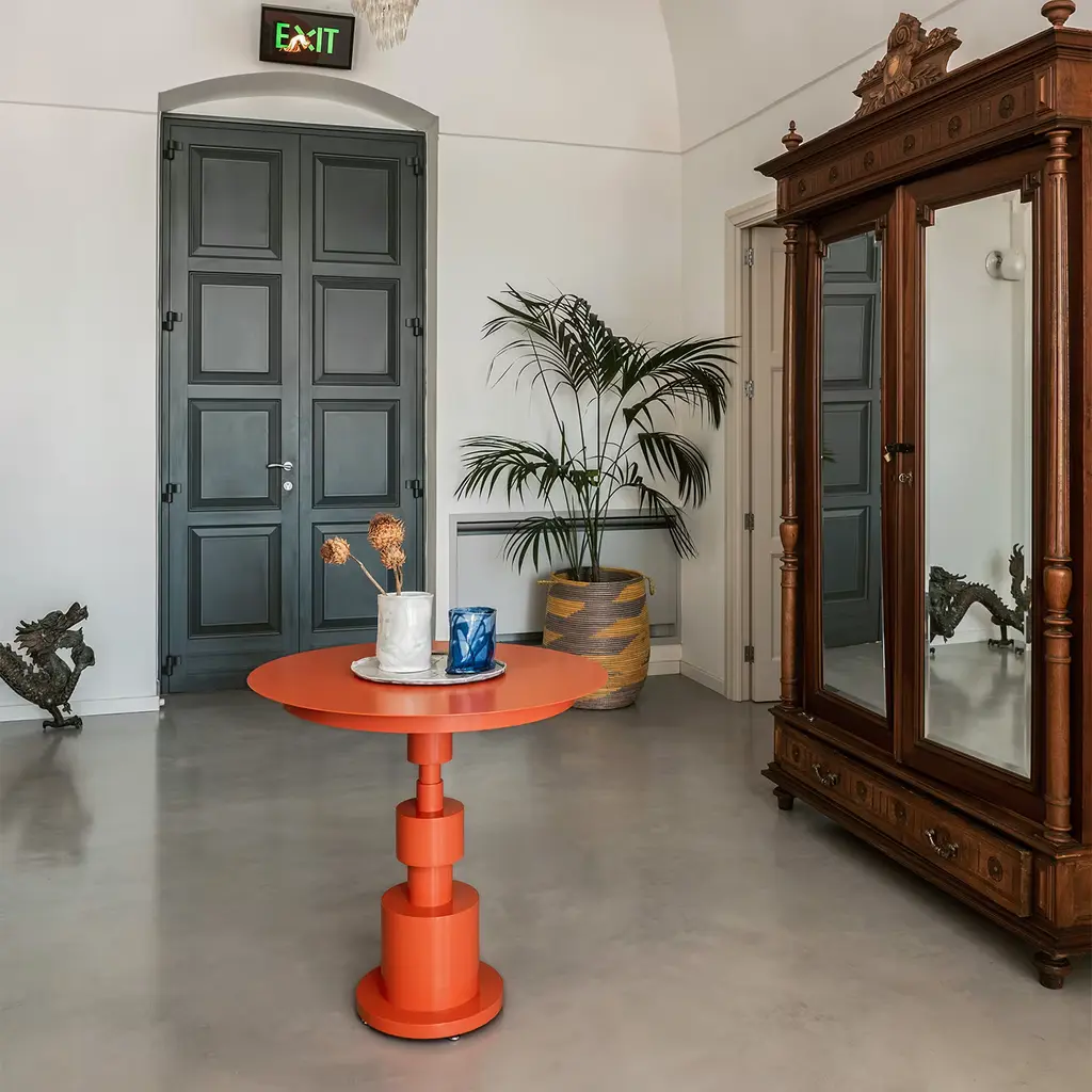 Periplo, from Alessandro Guerriero's "O" collection for Officine Tamborrino, embodies the circle's essence. Sara Mondaini's table amplifies the motif and exudes dynamism. Periplo features sleek volumes and a rhythmic interplay of cylinders mirroring the cyclical nature of time. The leg, a fusion of metal cylinders, exudes an industrial vibe. Completing the ensemble is the light, slender tabletop, enhancing versatility for indoor and outdoor settings.
