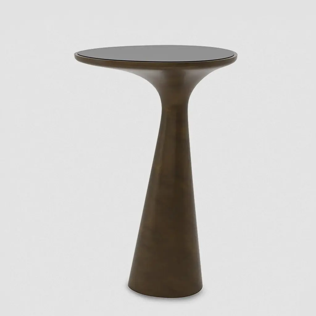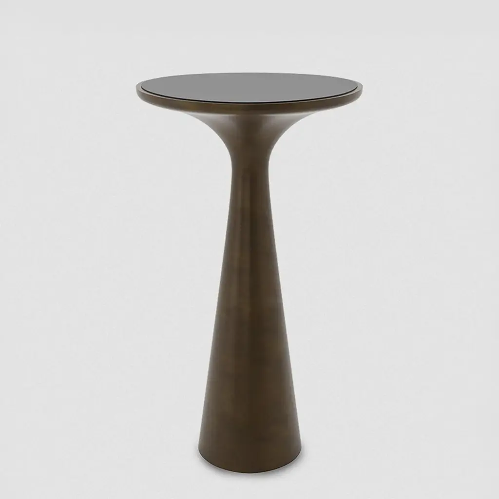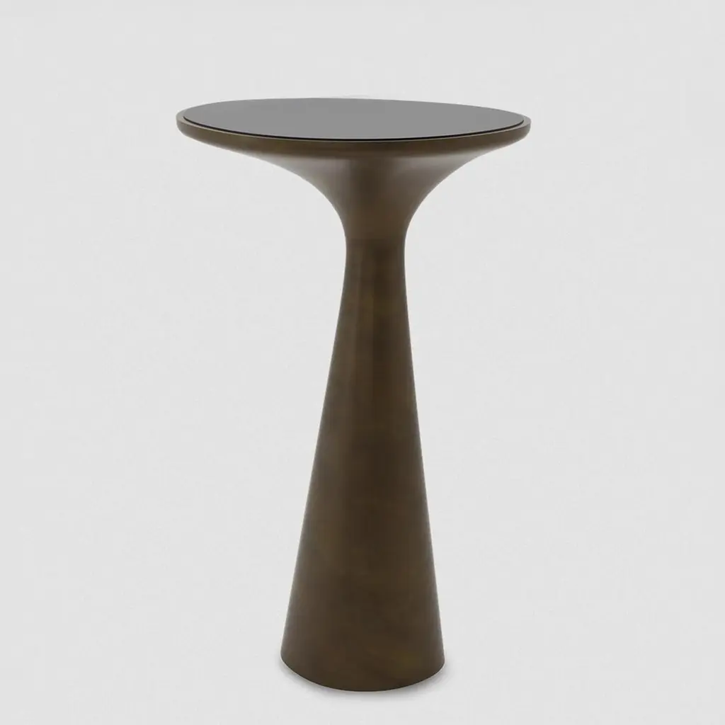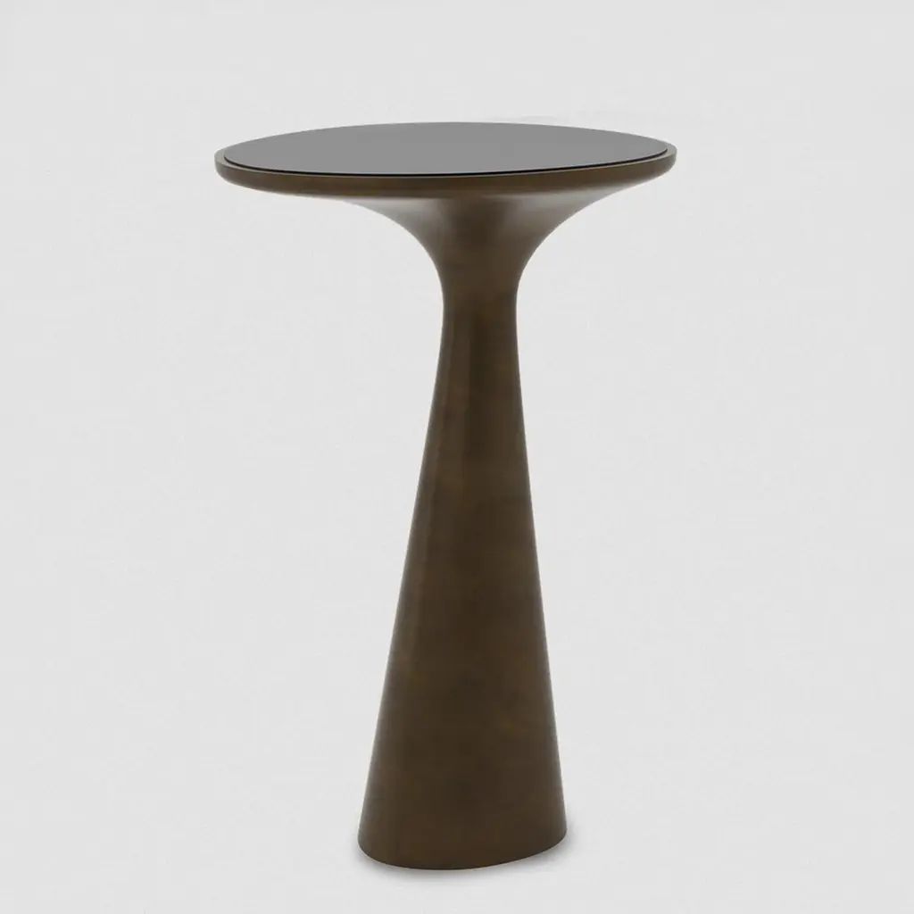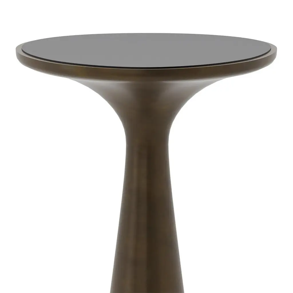 Side Table Perone with strong resin base in Aged bronzage finish. With a black glass top.