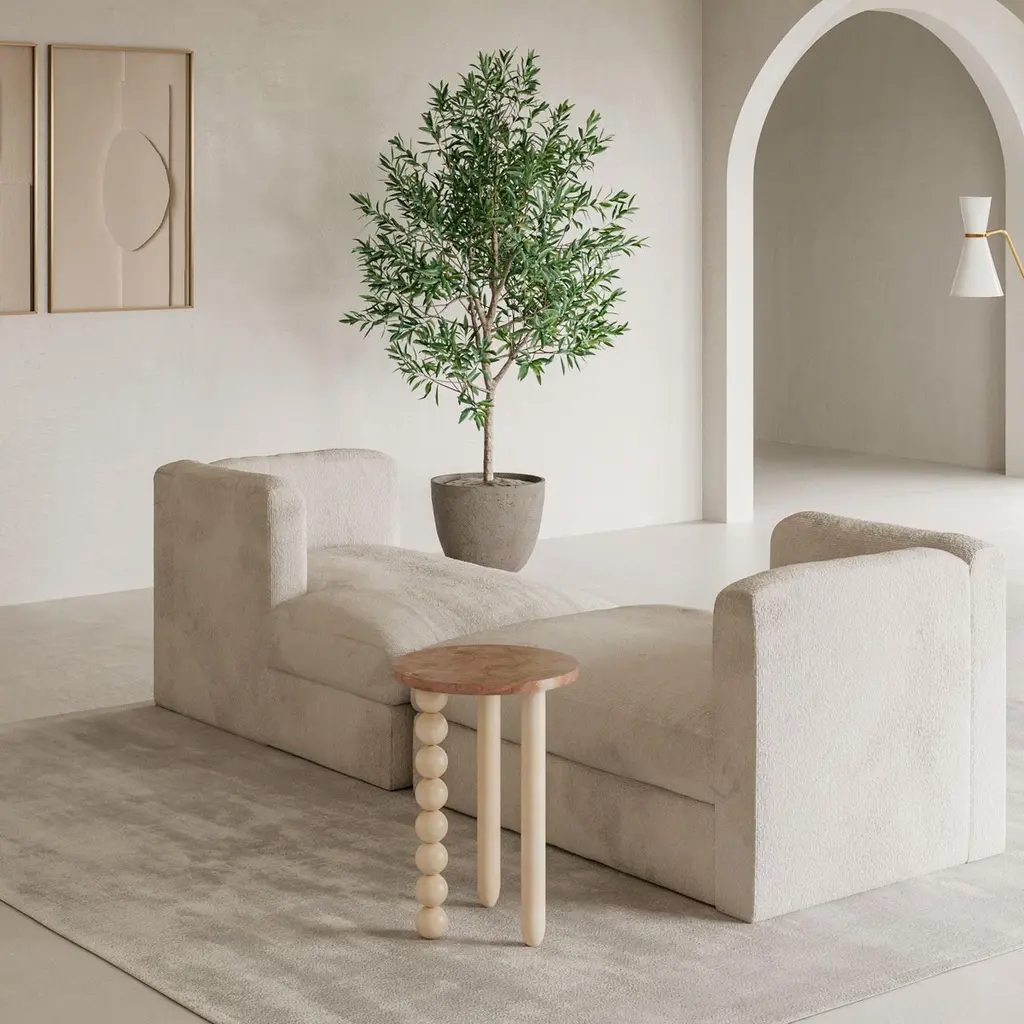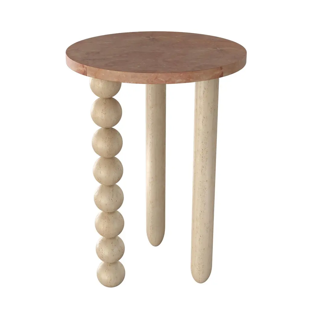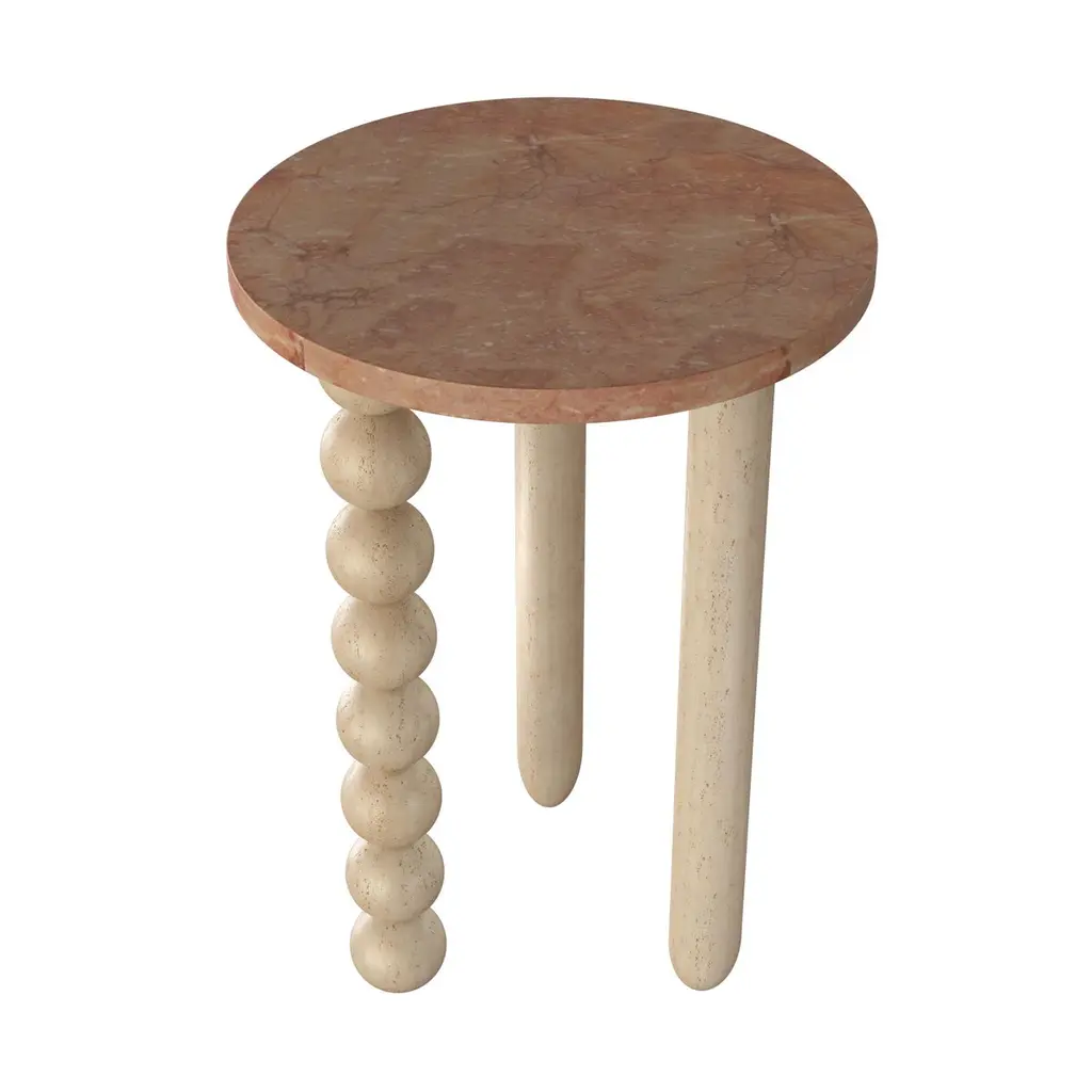 Pescador Medium Side Table by Gabriela CamposDimensions: D35 x W35 x H50 cm.Materials: TRAVERTINO + ROSSO SICILYA lyrical world of our tropical country with soft landscapes.“O VENDEDOR DE FRUTAS" (1925), by tarsila do amaral, has many meanings, such as the fruits of the earth. the shapes and tones so full of Brazilianness is what we are looking for in these piecesMais Alma is a design studio BASED in Rio de Janeiro, founded by architect and designer Gabriela Campos. Her work has a contemporary and welcoming approach: a comfortable and timeless aesthetic that combines warm materials and clean lines, with soft palettes and finedetails.