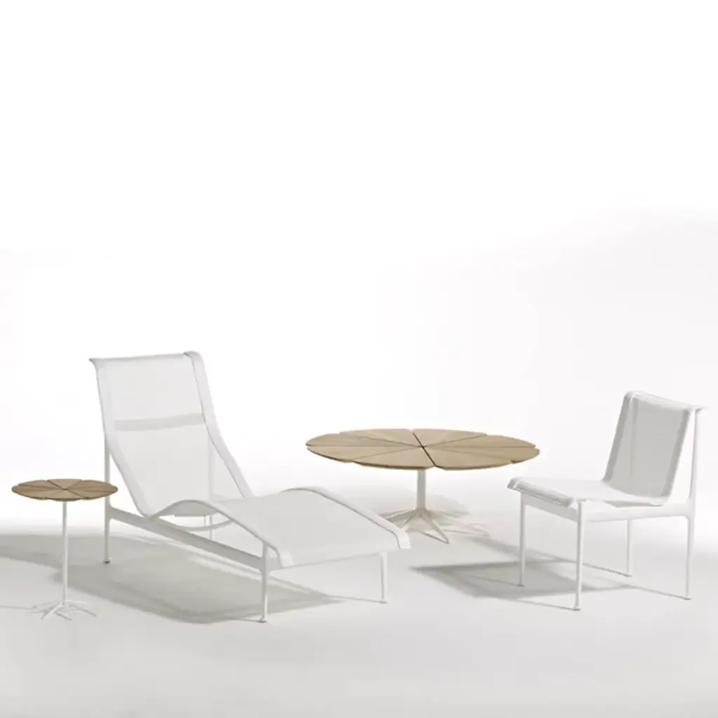Dating from 1960, the Petal end table was designed by its creator, Richard Schultz, to complement the chairs pioneered by Harry Bertoia. But thanks to its versatile minimalism, it accentuates virtually any outdoor seating just as easily. Petal Collection tables boast a structure reminiscent of Queen Anne's Lace (commonly found near Schultz's Pennsylvania hometown), wherein each 'petal' is discrete from the others. This allows the tabletop to expand and contract naturally for all-weather durability.