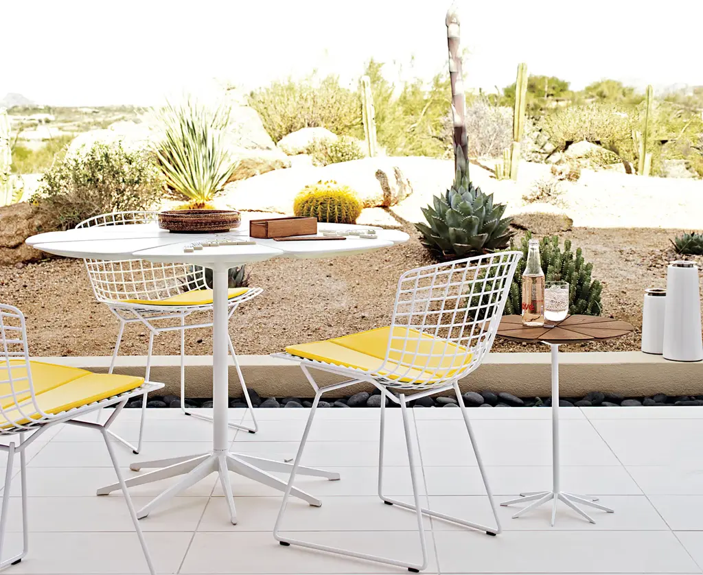 A graduate of the Chicago Institute of Design, aka “The New Bauhaus" founded by Moholy-Nagy, Richard Schultz joined the team at Knoll in 1951. In his first year, Schultz worked with Florence Knoll in the interior design office and assisted Harry Bertoia on the development of his wire furniture collection. Schultz designed his indoor-outdoor Petal Table (1960) to accompany Bertoia's wire chairs, leading to the launch of his first product for Knoll and one of the collections for which he is best known. Inspired by the sight of a Queen Anne's Lace flower growing near his home, he designed the tabletop to have eight petals. He then mounted them on a cast aluminum “spider" that keeps each petal independent, allowing them to individually expand and contract with the changing weather. The Petal Table is included in the permanent collection at MoMA. This is the authentic Petal Table by Knoll.