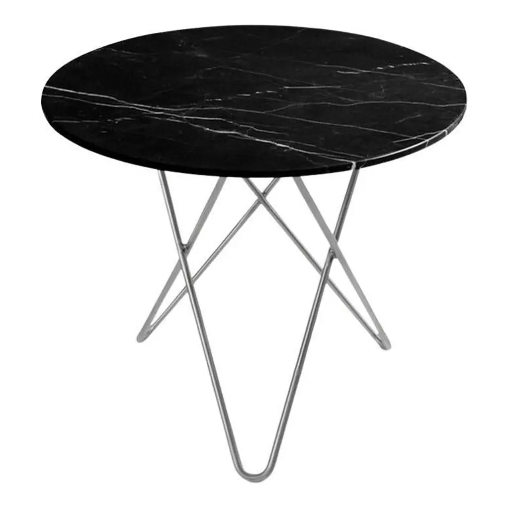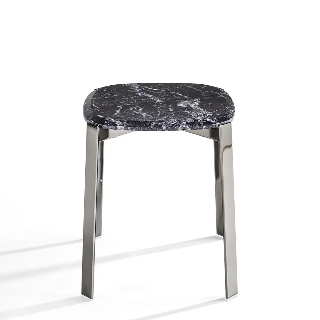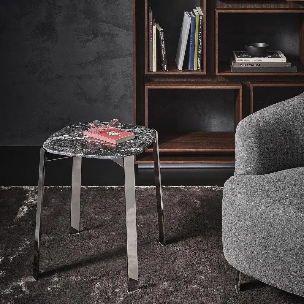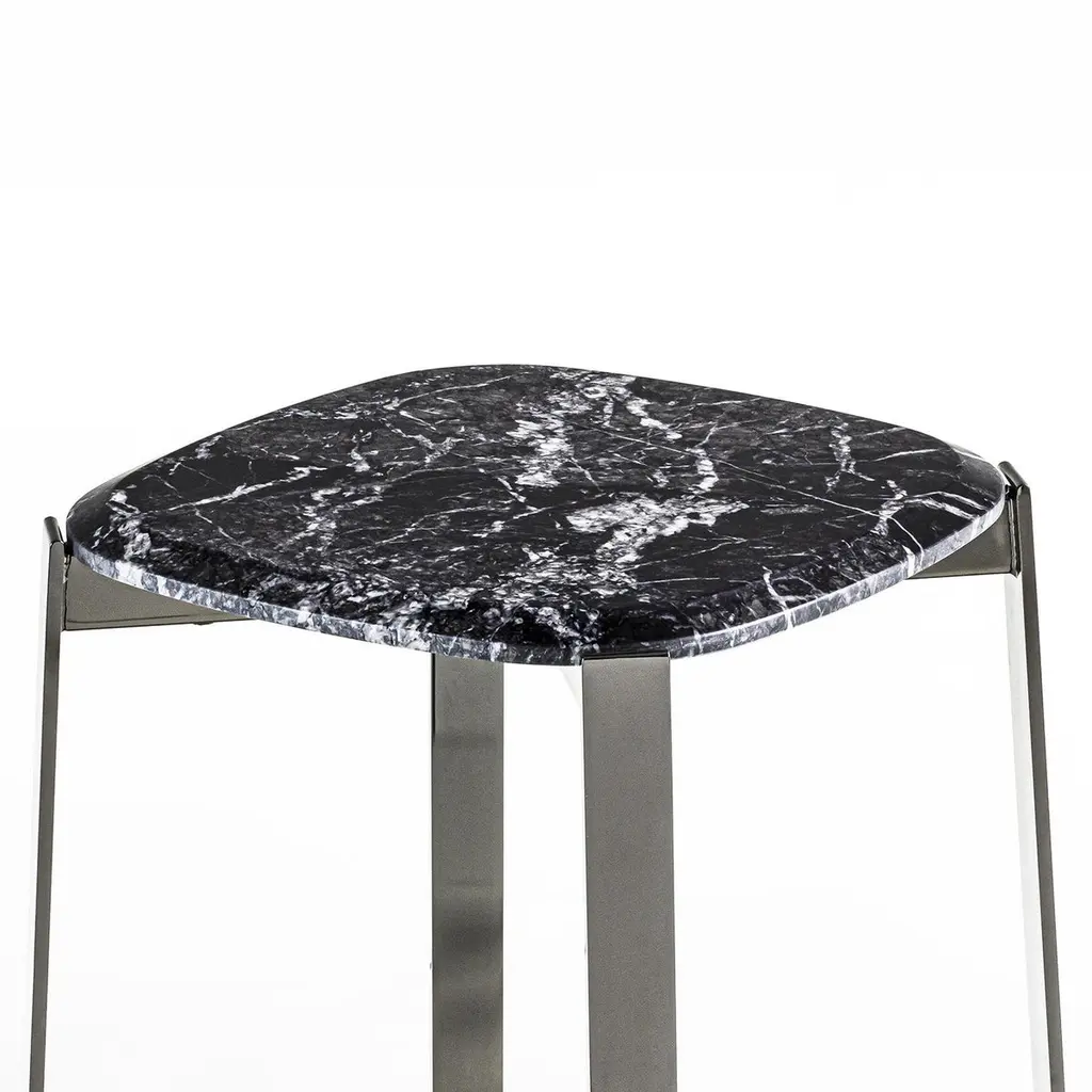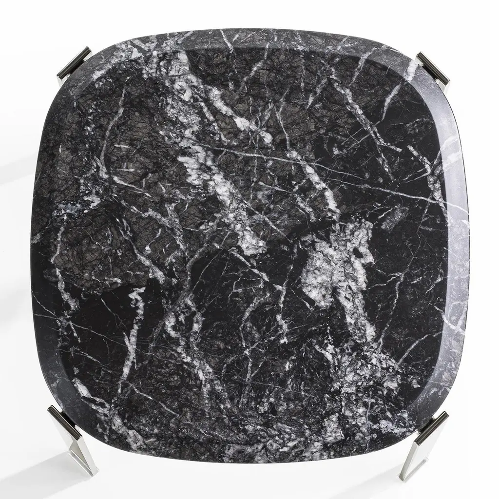 Side Table Peter Black with chromed metalstructure and with carnico grey marble top.Also available with black sahara marble or withwhite calacatta marble top, on request.