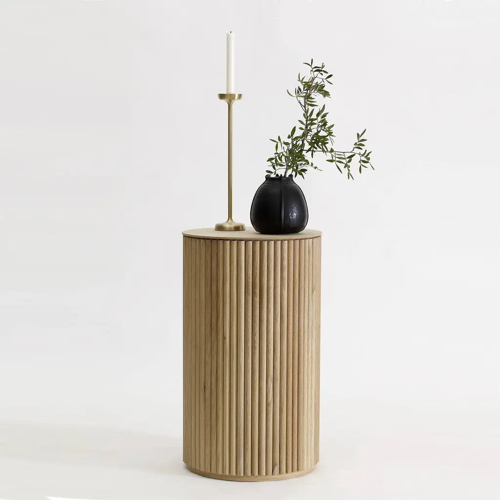Designers Anya Sebton and Eva Lilja Löwenhielm team up for the Palais series of striking occasional tables for Sweden’s Asplund. “We have chosen to play with the elegance and luxury from past tense with a semi-circular profile that creates a beautiful relief, together with a pure Scandinavian expression,” Anya explains. Fashioned in stained woodgrain finishes or lacquered oak colors, the sofa table features either a matching oak veneered top coated with polyurethane lacquer or luxe solid Carrara marble.