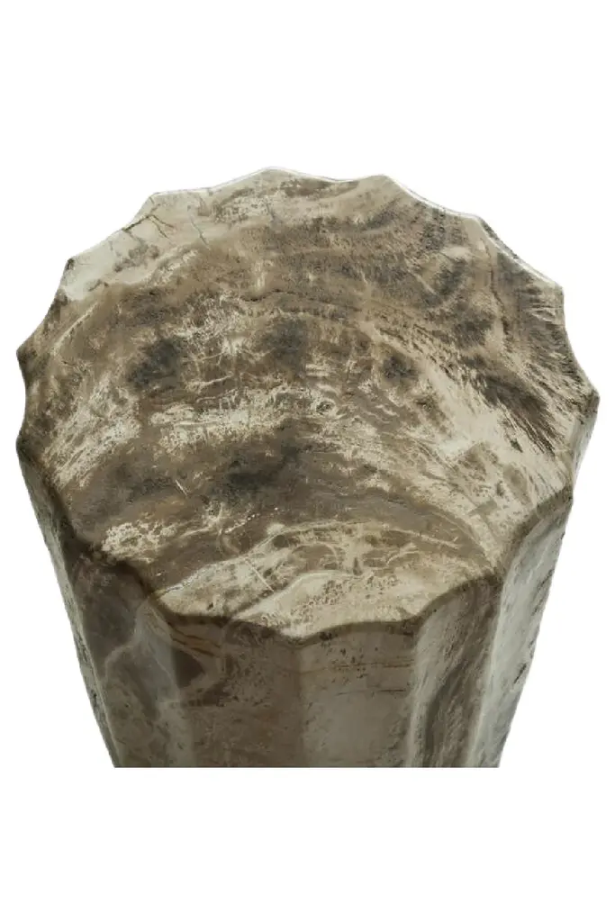 Made from naturally formed, hand-polished petrified wood, each stool has a unique finish with elegant, on-trend scalloped edging.Petrified wood is formed through the process of permineralization. When wood is buried under sediment or volcanic ash, it is preserved and turns to stone due to a lack of oxygen.Each stool has a unique finish due to the natural formation of this product. Once we receive your order, our furniture team will email you detailed images and dimensions of our available selection, for you to choose from.