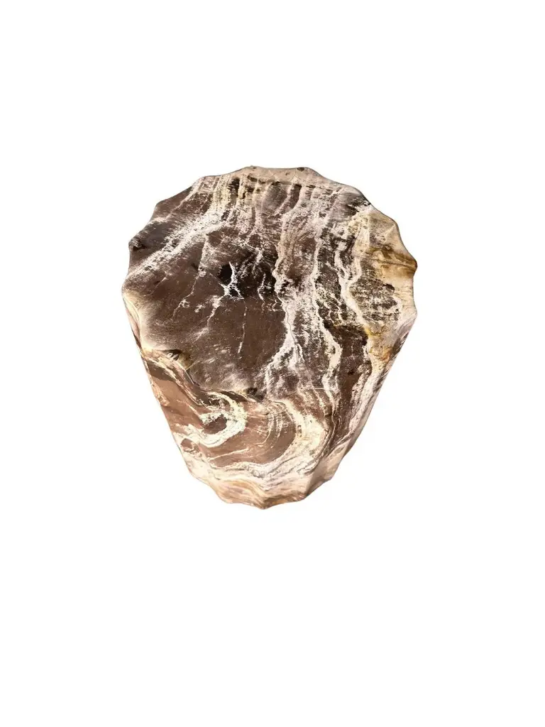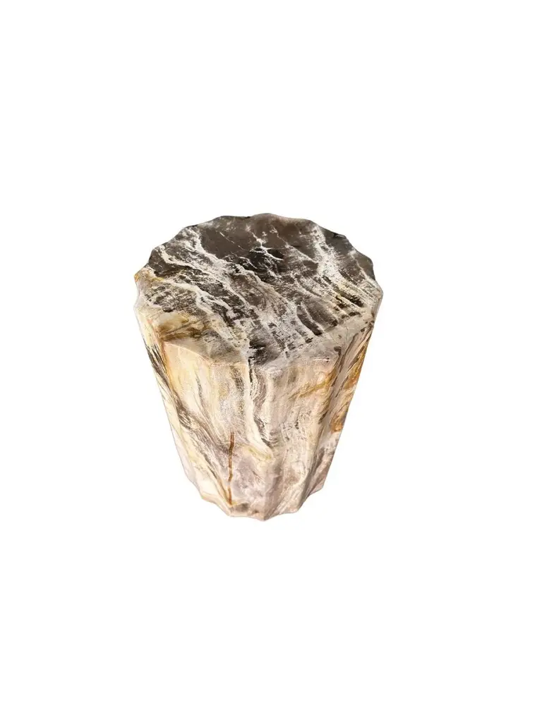 Petrified Wood Side Table With Carved Detail & Stunning Textures, Modern Organic