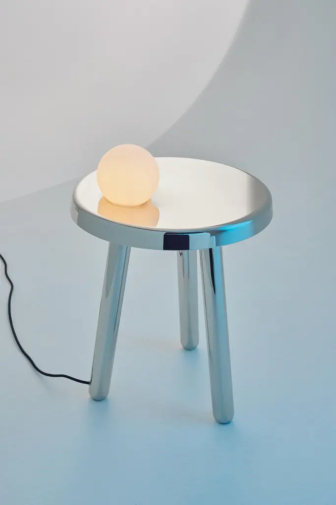 Green Alby table & lamp by Mason EditionsDimensions: 40 × 40 × 50 cmMaterials: Iron and glassColours: petrol green, light grey, black, white polished nickel.All our lamps can be wired according to each country.Like a photon in constant motion, bending space as it passes, the luminous source seems to have sufficient weight to distort the top on which it rests. The concept is inspired by Albert Einstein’s Theory of Relativity and his space-time studies. The curved shape of the top, a surprising yet subtle touch, confers a discreet personality to an object characterized by simple, clean-cut shapes and an interesting textural note. This always chic side table with lamp attached sits perfectly in the living area, beside the bedroom or simply as a statement design piece. Dimmable light, available in five coloured variations and finishes.Mason Editions is an Italian company specialized in the production of design furniture, lighting solutions, and accent pieces. Born from the lifelong passion for lighting and entrepreneurial spirit of Fabio and his partner Silvia, Mason Editions places itself halfway between fine art and exquisite craftsmanship. A collection of lighting, design objects, and furnishing accessories, signed by artists Serena Confalonieri, Martina Bartoli, and Matteo Fiorini, head of the creative direction. Mason Editions comes from the experience of an Italian lighting company placed in the Veneto region. This new brand of furniture elements was born from the meeting between the entrepreneur Fabio Mason and three international designers who designed the first collection for a sophisticated public. Therefore the collection wants to be eclectic and timeless. The material contrast and fresh design, with essential shapes, mark the mason editions collection. In conclusion, the elegant Italian sign highlights proposals suitable for all environments. Mason editions is a set of experiences, artisans, and productive know-how that creates a capable system.