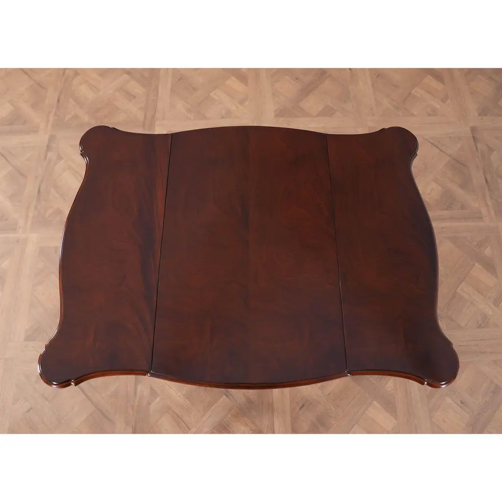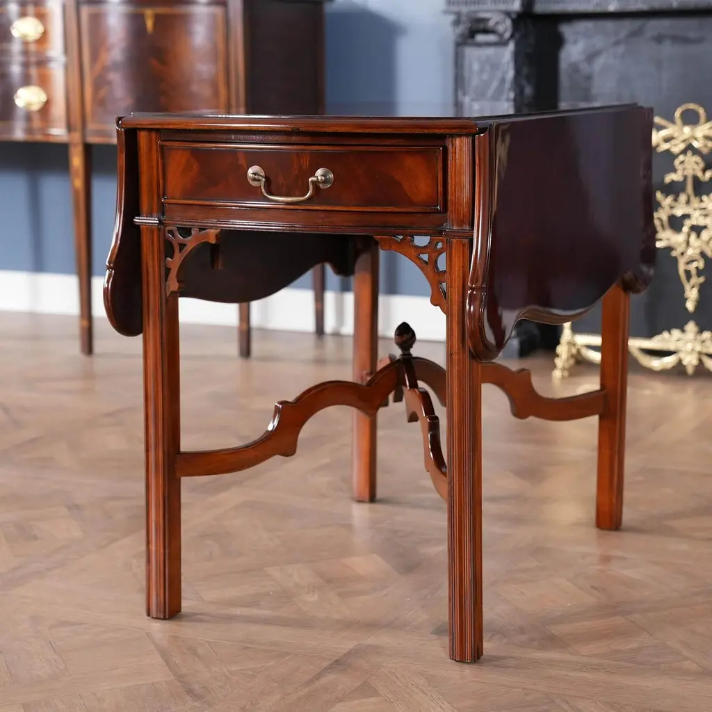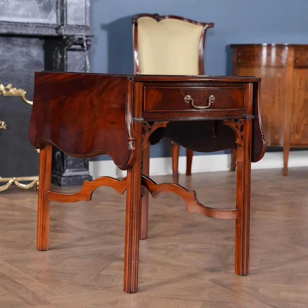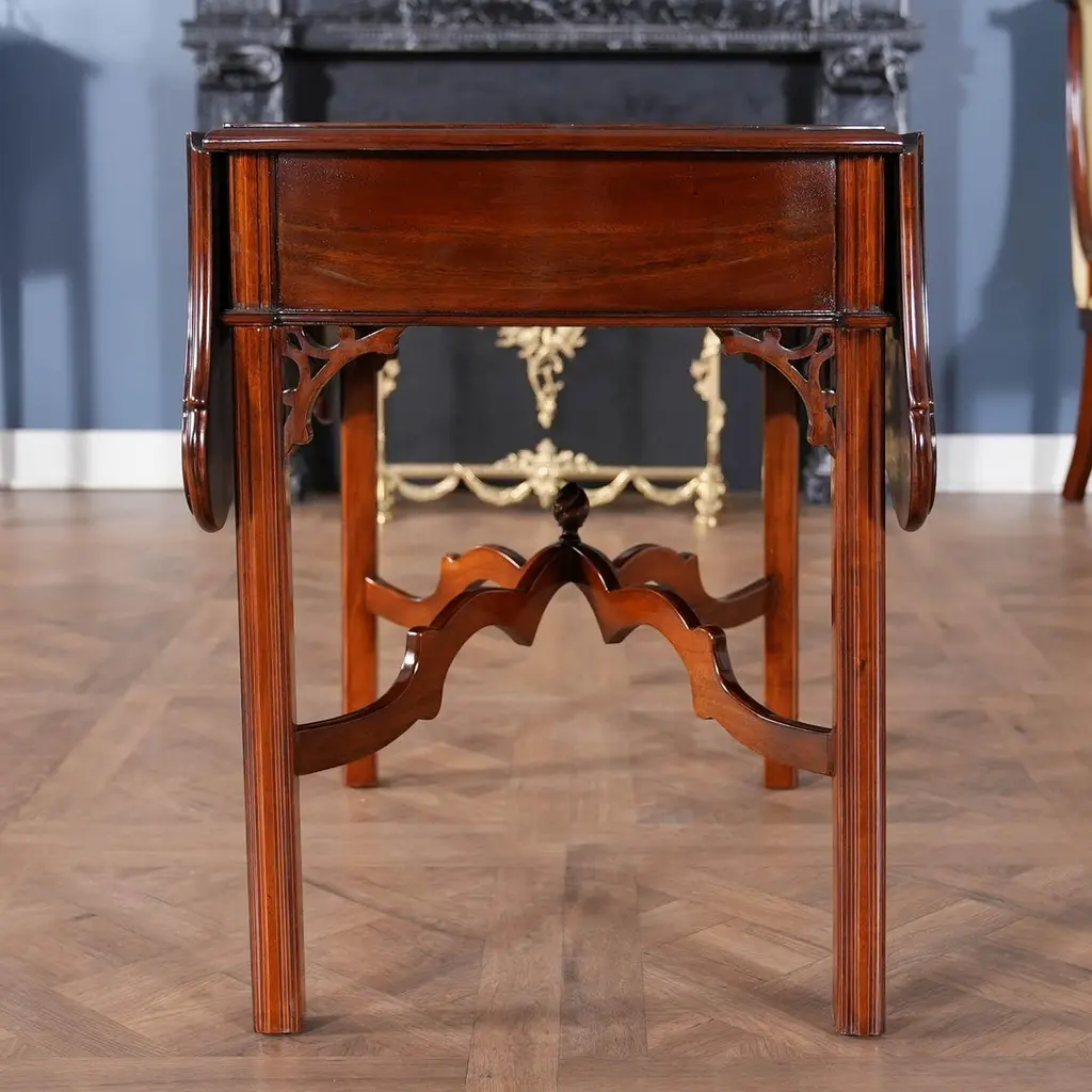 The Niagara Furniture version of the Philadelphia Pembroke Table is the largest table of it’s kind that we know of. The table is versatile due it’s ability to expand in size using the drop down side panels and can be used throughout the home. High quality solid mahogany supports hold the leaves in place when they are raised. Also often referred to as either a dropside table or breakfast table.Measures 22.5″w – 45″w x 32″d x 28.5″h metric 58-114 81 74
