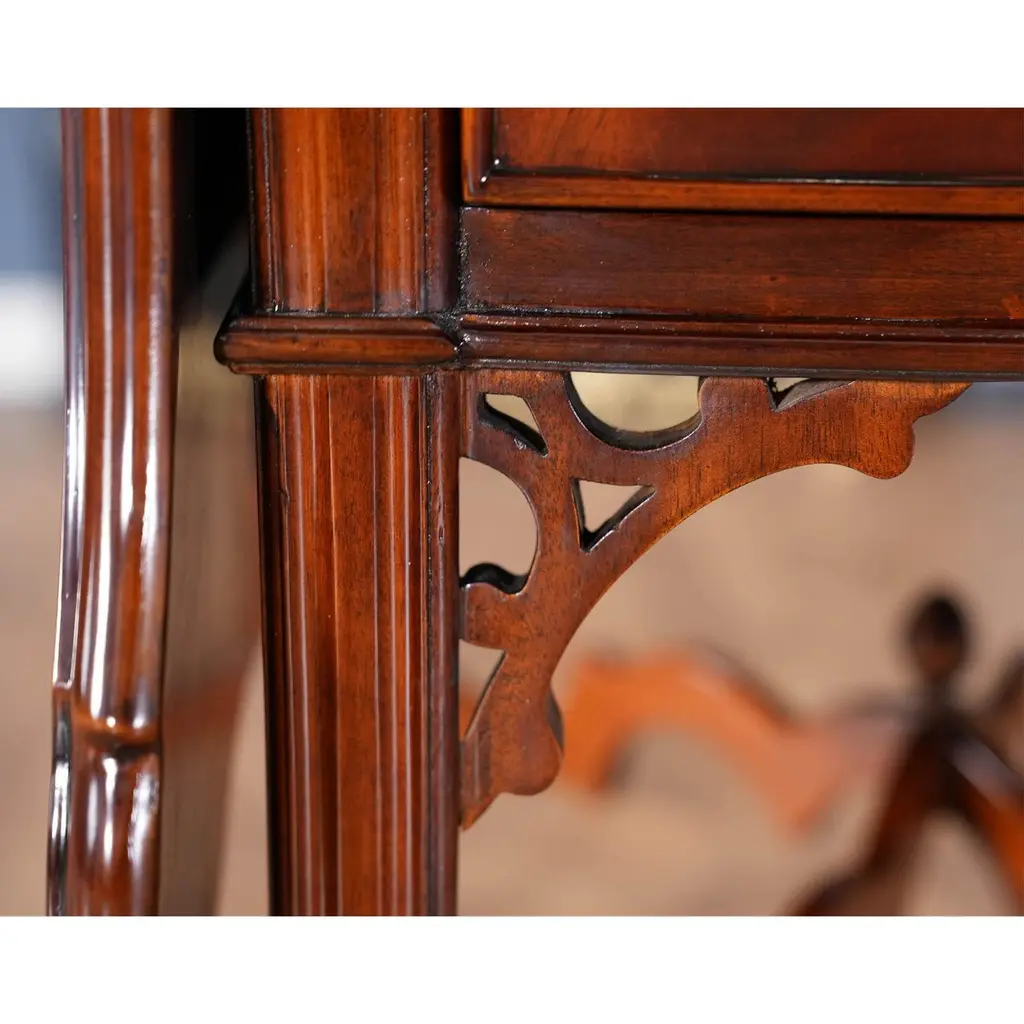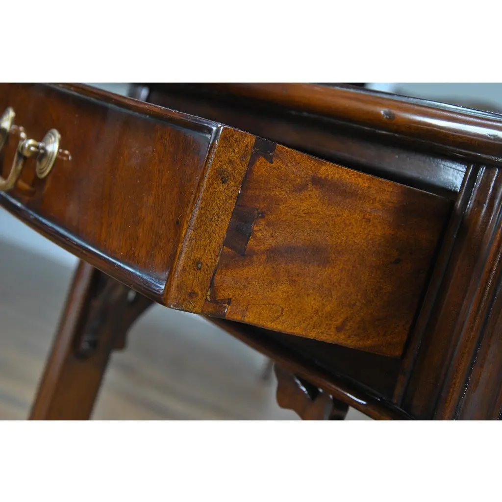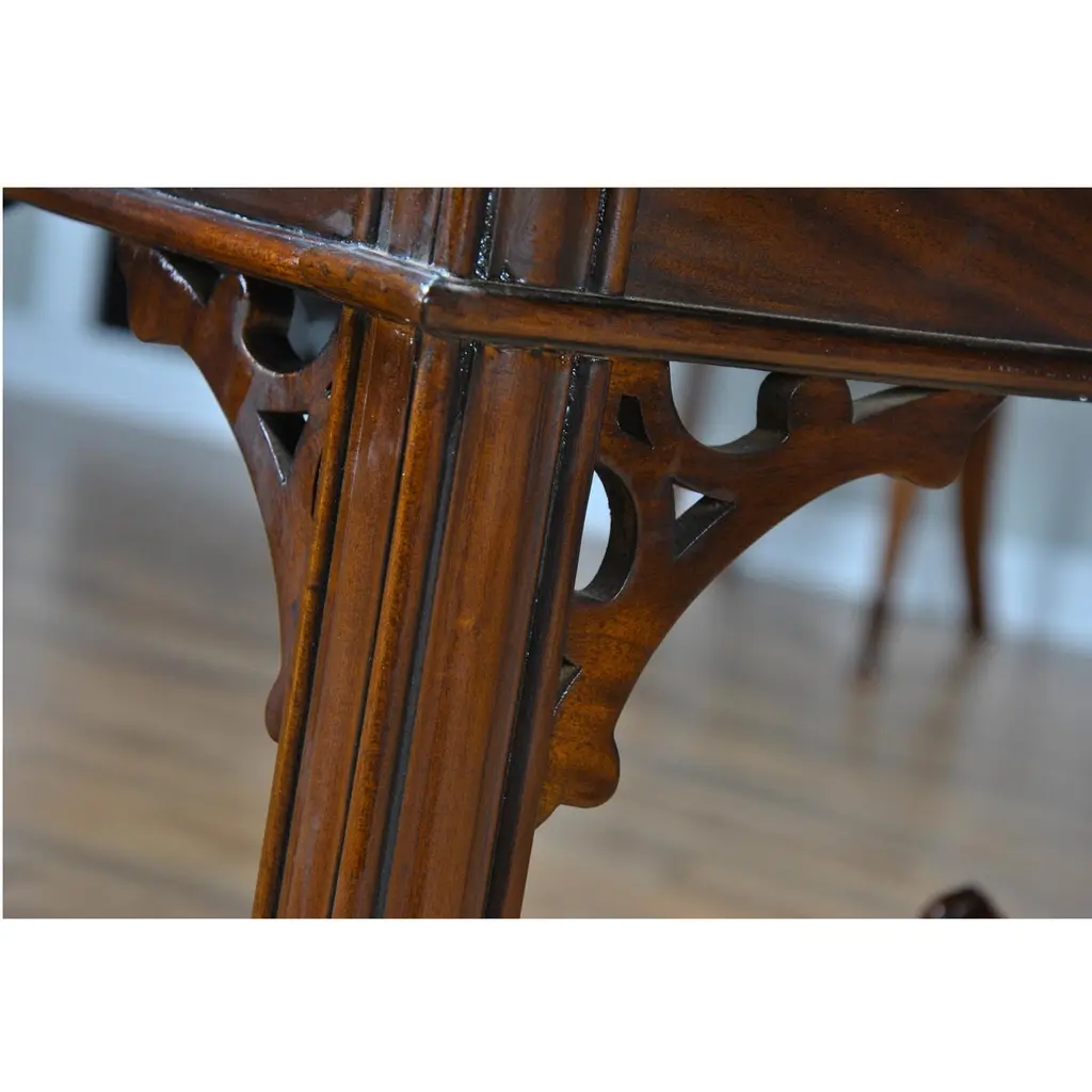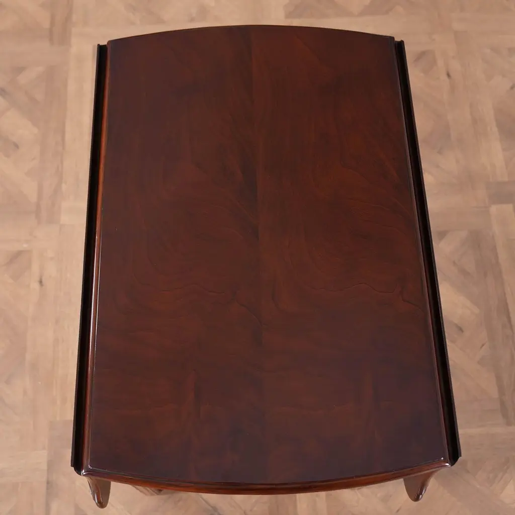 The Niagara Furniture version of the Philadelphia Pembroke Table is the largest table of it’s kind that we know of. The table is versatile due it’s ability to expand in size using the drop down side panels and can be used throughout the home. High quality solid mahogany supports hold the leaves in place when they are raised. Also often referred to as either a dropside table or breakfast table.Measures 22.5″w – 45″w x 32″d x 28.5″h metric 58-114 81 74
