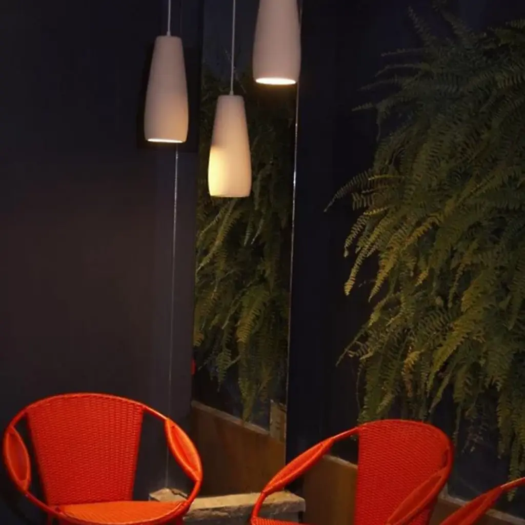 The Phobos Mini Pendant from Geo Contemporary showcases an elongated, vase-like form that exudes grace and simplicity. Its smooth, ceramic body narrows slightly at the top before widening into a gentle curve that flows down to a broader base. The pendant's surface displays a fine, vertical texture, adding depth and character to its monochrome appearance. Suspended by a single, slender cable, the narrow top of the shade suggests focused downlighting, perfect for creating intimate lighting over bar areas, side tables, or in clusters above larger spaces.