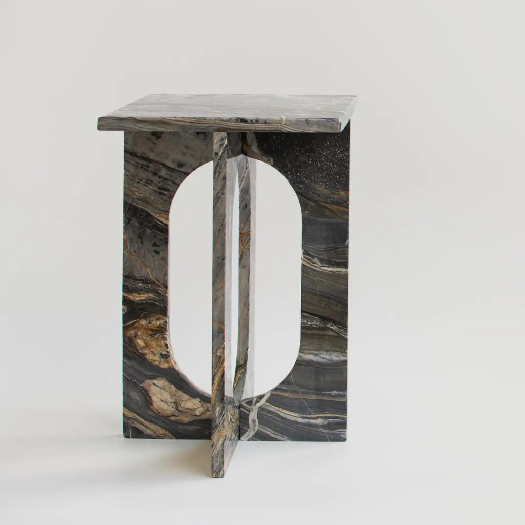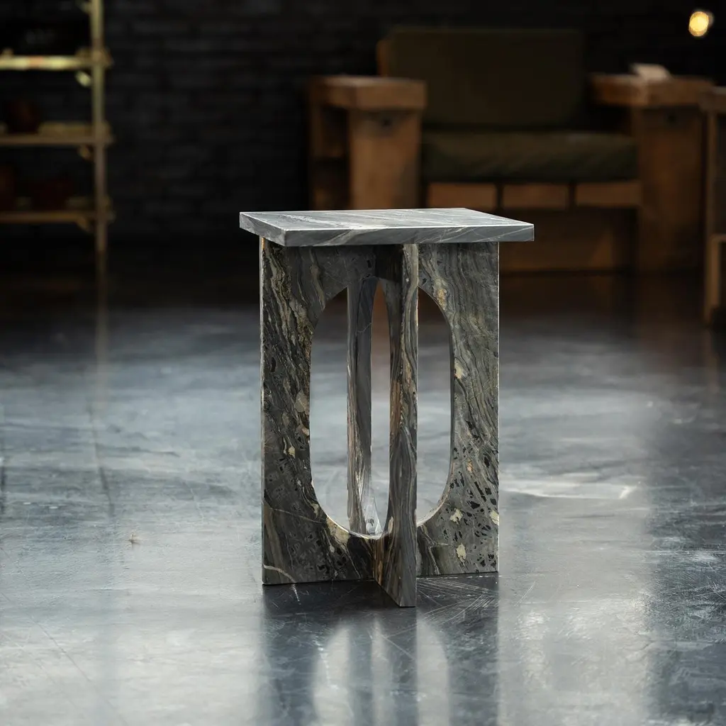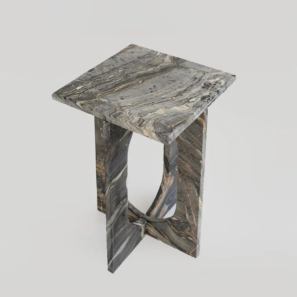 BOND Side Table in Picasso Marble - Bond Side Table evokes simplicity with its modern, clean design. Crafted from honed marble, this piece is a stylish addition to any space with its sophisticated, clean lines and sleek construction. Use 'Bond' as a display table with candles or a small plant or use as a bedside table.Exquisitely crafted from marbleEmbracing unique colors and variations in each piece30 x 30 x 45 cm