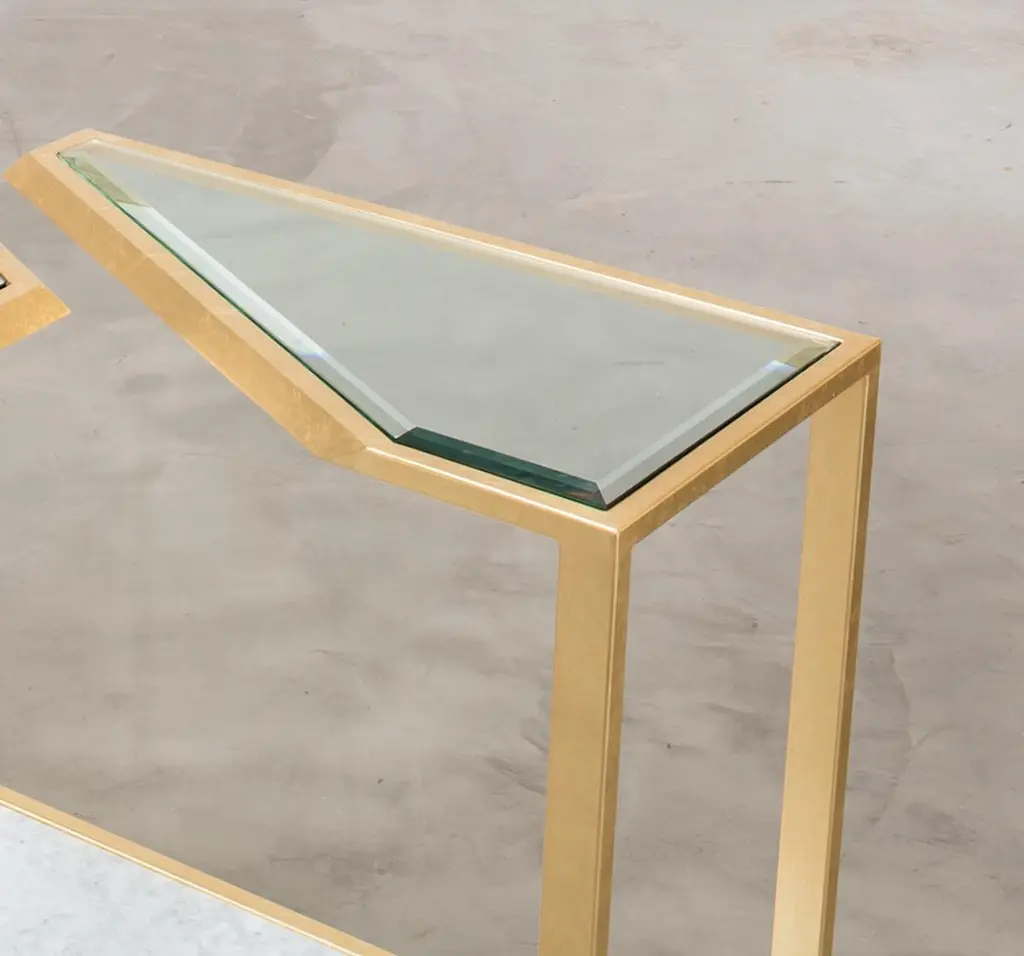 Pierre Console Table - Modern Gold Leaf Over Iron With Beveled Glass