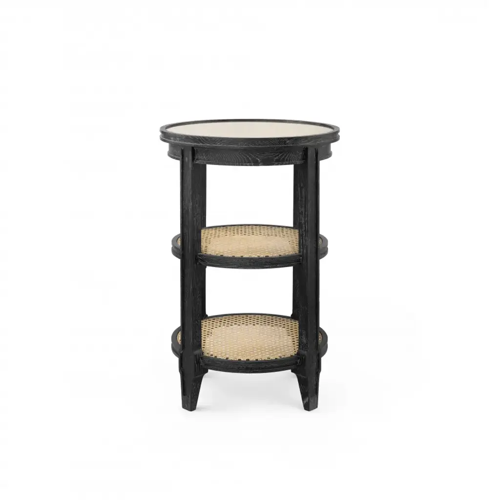 Make any room look regal with the Pierre Side Table. Our Pierre Side Tables, offered in both black and natural, draw inspiration from French provincial design with hand-carved paneling and a traditional octagonal cane pattern. Its tapered foot adds a simple touch that elevates its lightness and will be an elegant addition to any bedroom or living room. Finished with a glass top and 2 fixed shelves, the Pierre is practical and graceful.