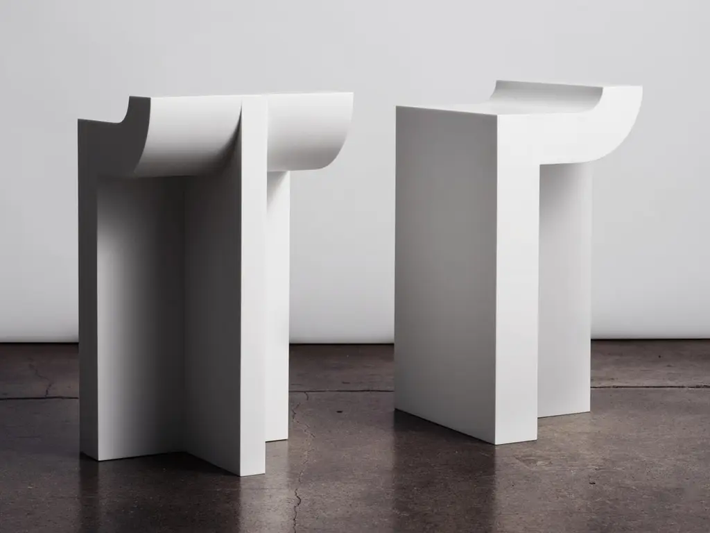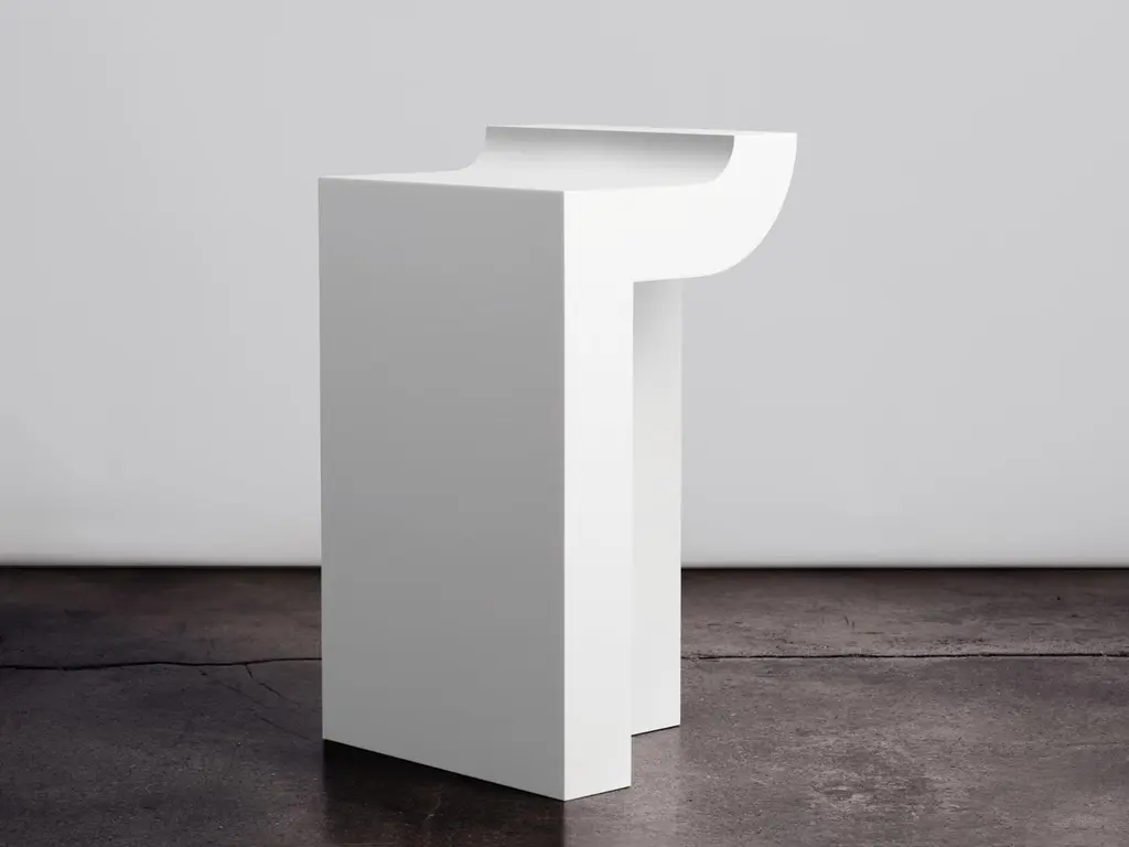 Pilast Sculptural Side Table by SNICKERIETDimensions: D 32 x W 28 x H 55 cm. Materials: Stone composite.Pilast can be customisable in color. Please contact us.Pilast is a sculptural piece of occasional furniture. It is inspired by the early19th-century neoclassical style ’Swedish Empire’ and serves as both a side table and a stool. Pilast is crafted using traditional wood bending techniques applied to a modern, pure white stone composite. The result looks as if carved from marble, but a closer inspection reveals an unexpected precision in both material and shape. As an amalgam of classical clues, traditional craft, and modern material, Pilast has an unusual presence.SNICKERIET is a furniture studio with an explorative approach to traditional woodworking craft and philosophy. Projects are initiated as research into topics revolving technique, construction, decoration and material properties. The findings are released in the form of individual pieces of furniture. The studio was founded in 2011 and is based in Stockholm and Gothenburg.Karl-Johan Hjerling, designer, creative director, founderGunnar Dahl, Production manager, founderHannu Hietamäki, Lead cabinet makerRobert Zillén, Head of studio and client matters