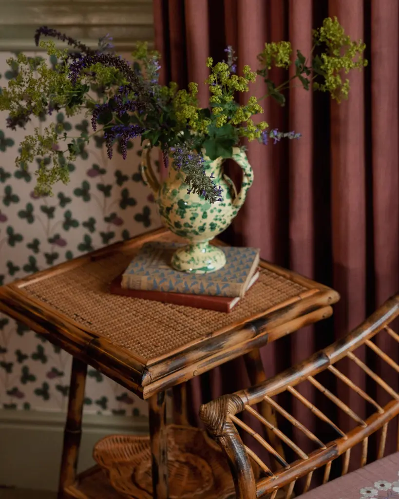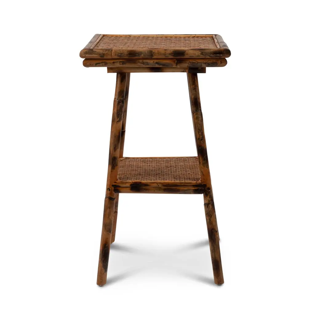 The Pimlico side table is neat and chic: its faux-bamboo legs, hand-crafted from beautiful torched rattan, call to mind the antique tables of a bygone era. Two tabletops make it practical for cups of tea by the sofa, books by the bedside or a makeshift cocktail bar when guests arrive.65cm H x 42cm L x 42cm DCare:Natural rattan is not suitable for outdoor use. Rain and direct sunlight affect the finish over time. If you need to clean your furniture, remove dust with a vacuum cleaner or dry brush. For a deeper clean, wipe down with a damp cloth, ensuring the product is completely dried afterwards.Gently scrub the furniture with a soft-bristled scrub brush and warm soapy water, then rinse with a damp sponge. You don't want to oversaturate the piece, as this can cause the bamboo to swell.