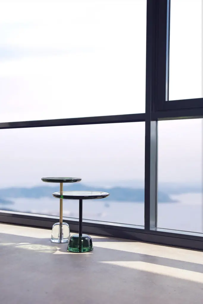 Pina low light grey brass side table by PulpoDimensions: D 44 x H 42 cmMaterials: glass; brass and steelAlso available in different colours.Sebastian Herkner’s distinctively tall, skinny side table series pina is inspired by the abstract turns and twists of the famous Pina Bausch dance theatre. The basic figurine with base, rod and top shines in different combinations of aqua blue, transparent, green and light grey. Each piece is created fromtransparent or coloured cast glass. Bubbles, streaks and other variations in size and colour are part of the production process, and not defects of the design or production.Pulpo is a design editor for high-end products in the home sector.Design is our passion. Art is our engine. We are fascinated by the craft of the ceramic and glassblowing workshops and are guided by the rough aesthetics of these unique pieces.Pulpo’s philosophy goes back to the idea of the “carte blanche”. Our designers and artists develop their designs freely and experimentally. A variety of materials and a weakness for structures are our strengths.The headquarters of pulpo is in Weil am Rhein, near the Swiss border. Consisting of the creative and sales department, warehouse and logistics, this is the think tank for our artists and designers. pulpo’s dealer network extends far beyond Weil am Rhein – from Iceland and Dubai to Australia.Pulpo is movement – is possibility – is passion.In 2006, pulpo was founded by Ursula and Patrick L’hoste as a design brand at the interface between shape and material. pulpo’s conception is to edit lighting, furniture and accessoires on editor’s choice. The company’s focus is to conduct up-and-coming designers and selected manufacturers, using the nature of material’s to form the score. Materials such as ceramics, stone and especially glass, which is pulpo’s primary focus since 2013.