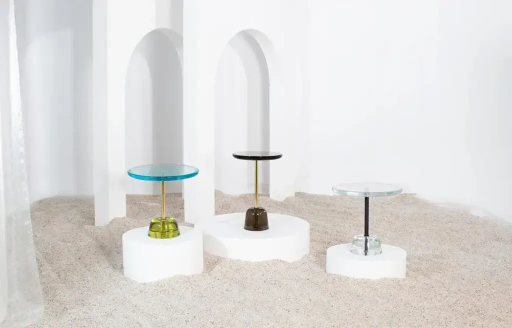 Pina low light grey brass side table by pulpo dimensions: d 44 x h 42 cm materials: glass; brass and steel. Also available in different colours. Sebastian herkner’s distinctively tall, skinny side table series pina is inspired by the abstract turns and twists of the famous pina bausch dance theatre. The basic figurine with base, rod and top shines in different combinations of aqua blue, transparent, green and light grey. Each piece is created from transparent or coloured cast glass. Bubbles, streaks and other variations in size and colour are part of the production process, and not defects of the design or production. Pulpo is a design editor for high-end products in the home sector. Design is our passion. Art is our engine. We are fascinated by the craft of the ceramic and glassblowing workshops and are guided by the rough aesthetics of these unique pieces. Pulpo’s philosophy goes back to the idea of the “carte blanche”. Our designers and artists develop their designs freely and experimentally. A variety of materials and a weakness for structures are our strengths. The headquarters of pulpo is in weil am rhein, near the swiss border. Consisting of the creative and sales department, warehouse and logistics, this is the think tank for our artists and designers. Pulpo’s dealer network extends far beyond weil am rhein – from iceland and dubai to australia. Pulpo is movement – is possibility – is passion. In 2006, pulpo was founded by ursula and patrick l’hoste as a design brand at the interface between shape and material. Pulpo’s conception is to edit lighting, furniture and accessoires on editor’s choice. The company’s focus is to conduct up-and-coming designers and selected manufacturers, using the nature of material’s to form the score. Materials such as ceramics, stone and especially glass, which is pulpo’s primary focus since 2013.
