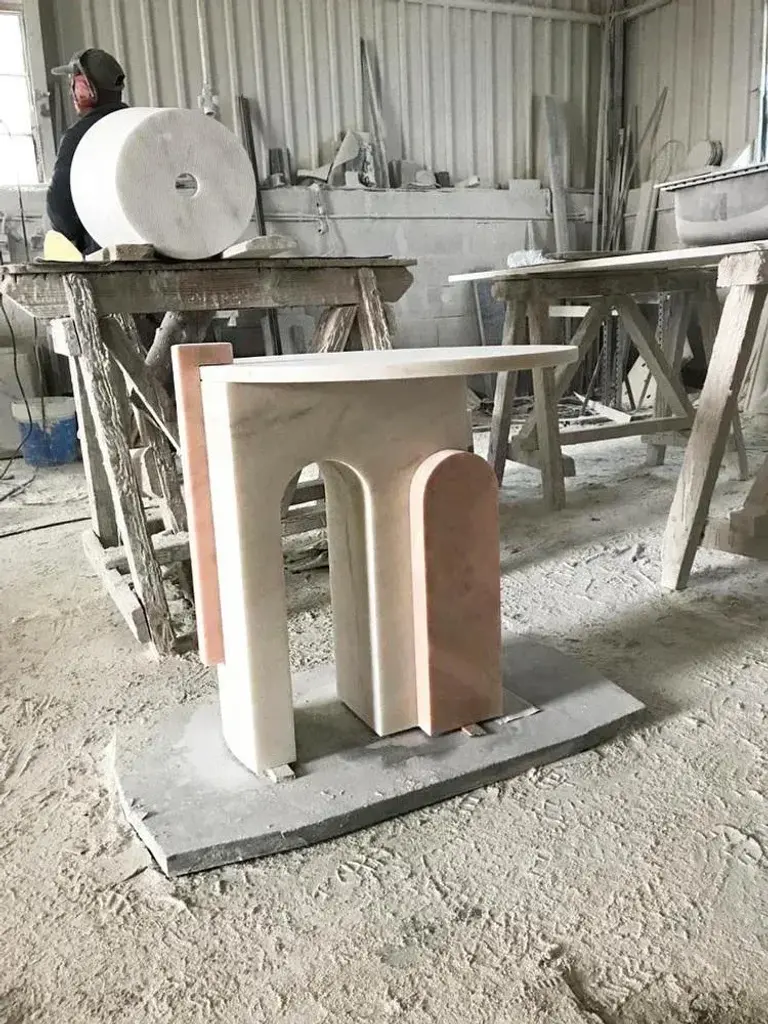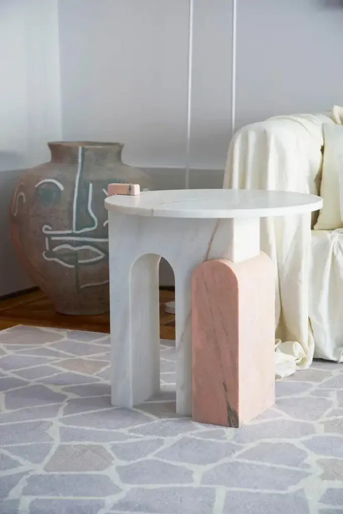 Pink Marble Side Table By Dovain Studio