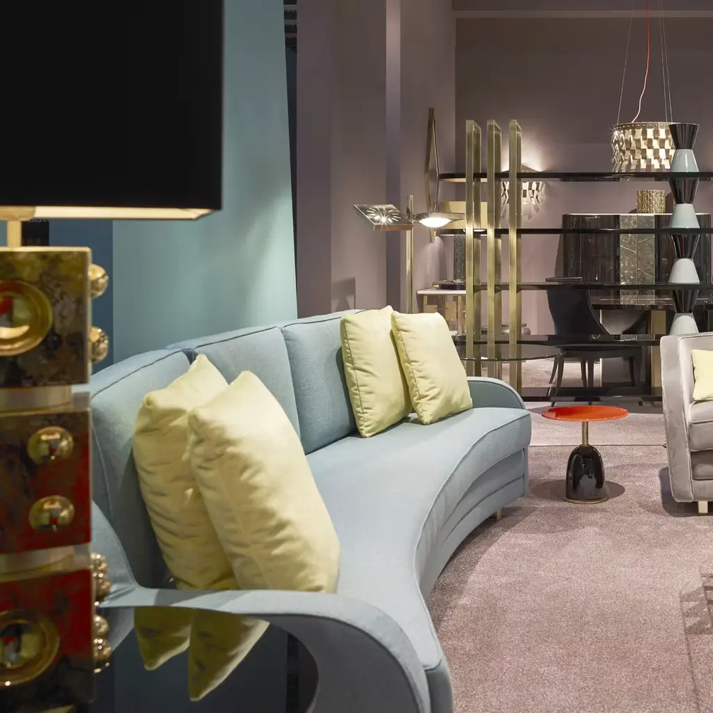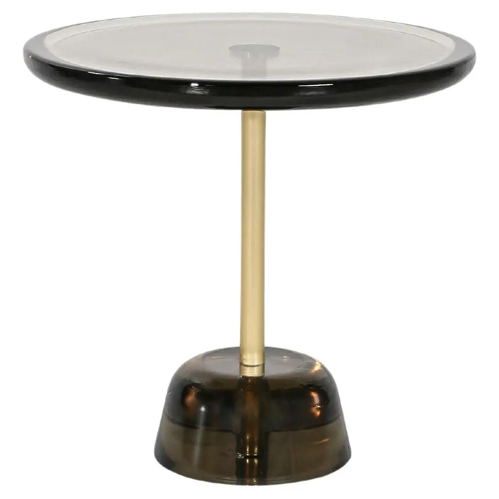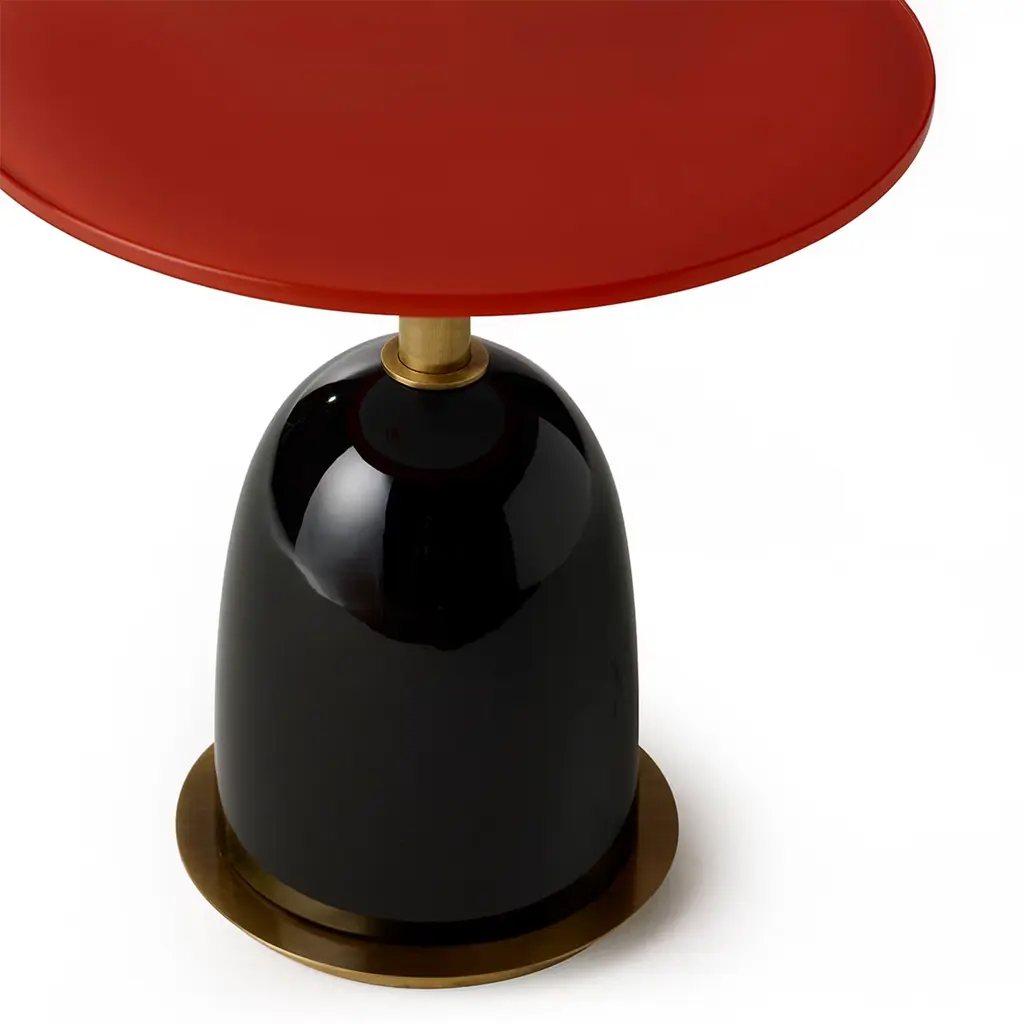 Part of the Pins collection introduced at Milan Design Week 2018, this exquisite side table features a structure in brass with a curved base covered in enamel-finished ceramic with a black color that strikingly contrasts with the vivid red (RAL 3000) of the round top crafted of crystal. The top is adorned with a series of square elements that resurface from the brass structure, adding an elegant accent to the piece. Ideal in a monochromatic and contemporary living room, this table will make a statement either alone or with the Pins Large Side Table for a dynamic effect.