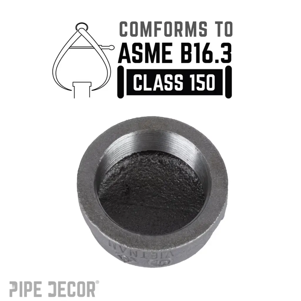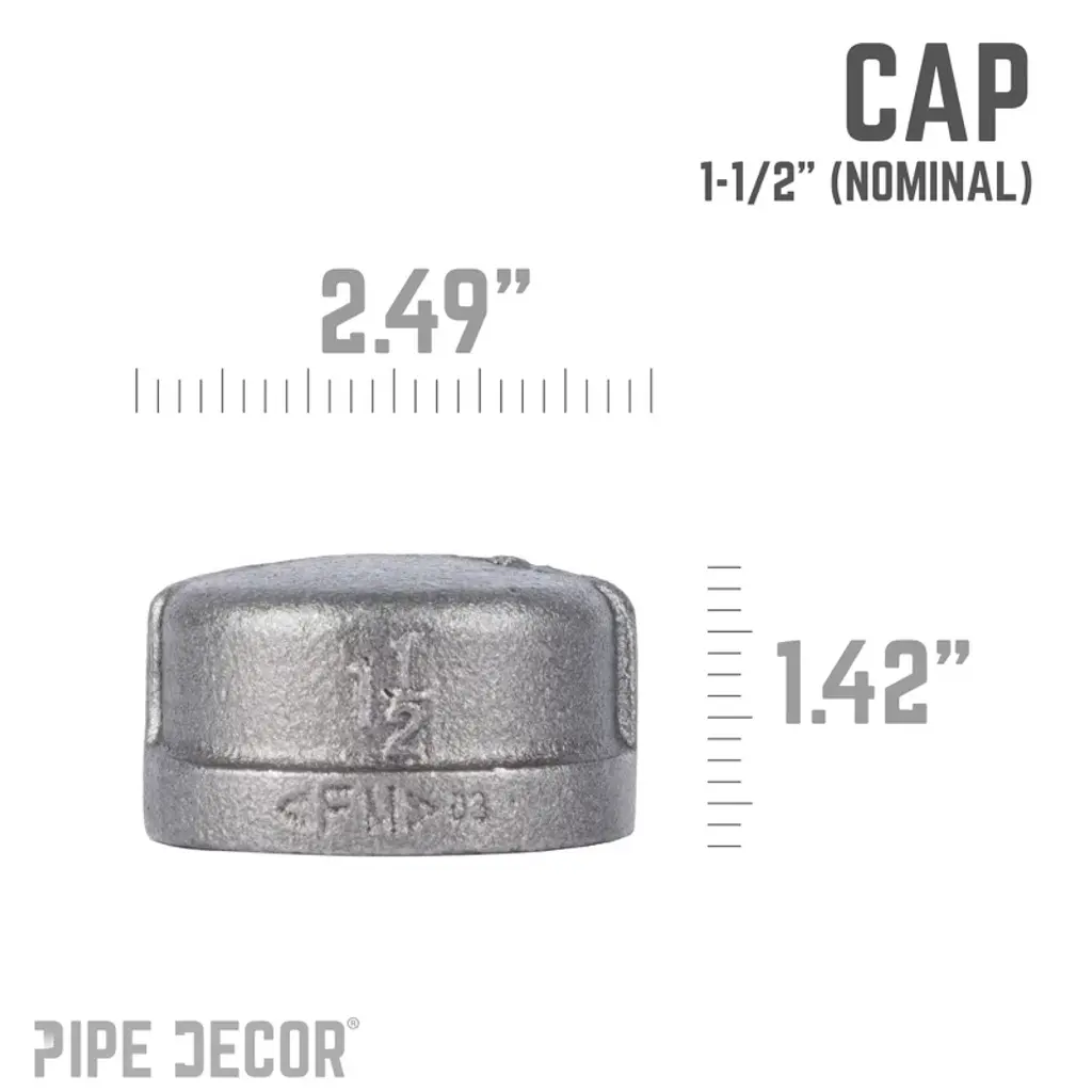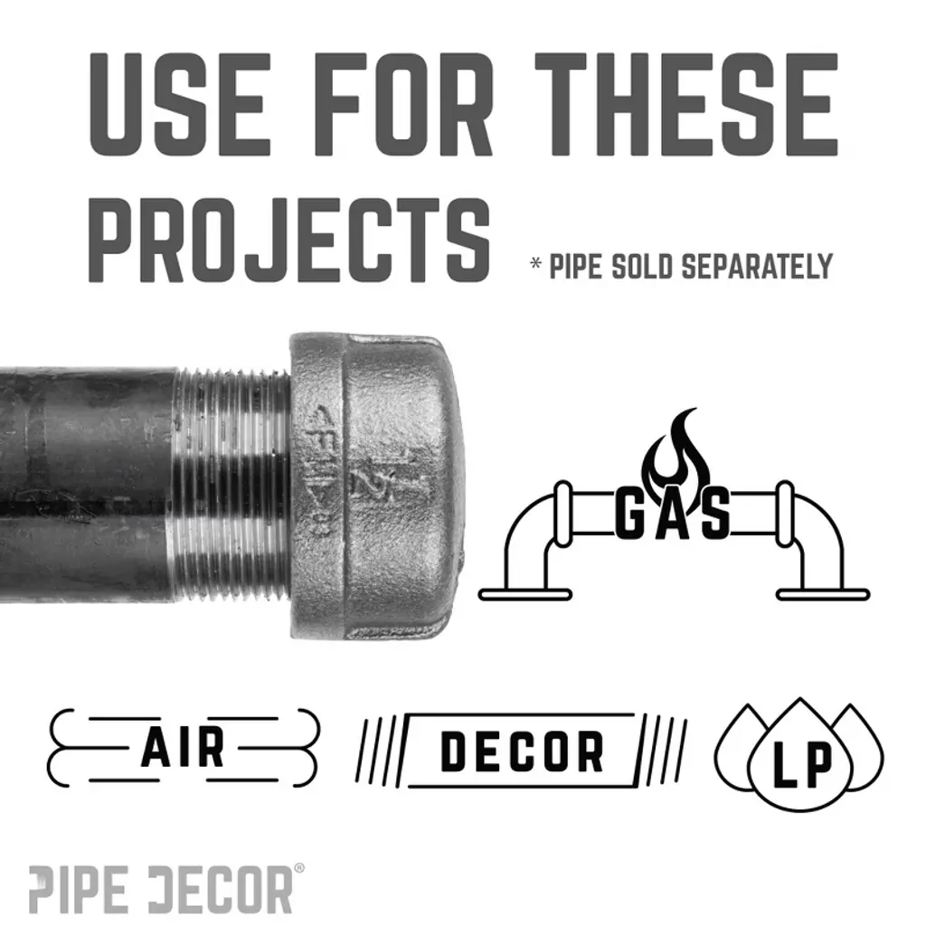 Cap it in style. Add a finished look to any pipe that’s not connected to another pipe or fitting. Use our caps as hook ends or feet for your side table, and create custom pipe fixtures and furnishings that will make a statement. Our fittings are made with durable, industrial-grade malleable iron. Fittings are 100% authentic and are made to stand the test of time. You will know PIPE DECOR parts and accessories when you hold them—beauty and beast, strength and style. These are real industrial fittings for your decorations and designs. Accept no substitutes. Extra pieces and accessories are available for your custom projects and expansions. Plug and play as desired. Perfect for any DIY project, iron fittings complement a variety of looks and aesthetics, including steampunk lighting, industrial, factory, French country farmhouse, vintage, retro, reclamation, DIY customized, modern, and more. We recommend cleaning and sealing each fitting before use. IPS threads offer compatibility with other project materials such as lamp parts, valves, and more, and they are compatible with any pipes, fittings, and PIPE DECOR furniture kits of the same diameter.