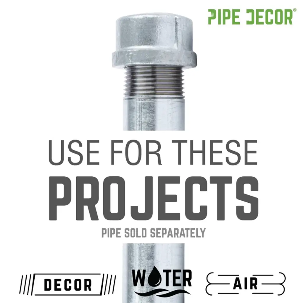 Cap it in style. Add a finished look to any pipe that’s not connected to another pipe or fitting. Use our galvanized caps as hook ends or feet for your side table. Create custom pipe fixtures and furnishings that make a statement. Galvanized fittings are silver in color with a shiny finish that brings a clean, polished look to your pipe furniture. Our fittings are made with durable, industrial-grade malleable iron. Fittings are 100% authentic and built to stand the test of time. You will know PIPE DECOR parts and accessories when you hold them. Beauty and beast. Strength and style. These are real industrial fittings for your decorations and designs. Accept no substitutes. Extra pieces and accessories are available for your custom projects and expansions. Plug and play as desired. Galvanized pipe fittings are corrosion-resistant and perfect for creating DIY furniture without worrying about rusting. They are project-ready with no cleaning or sealing required before use. Iron fittings complement a wide range of aesthetics, including steampunk lighting, industrial, factory, French country farmhouse, vintage, retro, reclamation, DIY customized, modern, and more. IPS threads ensure compatibility with other project materials such as lamp parts and valves, and they work seamlessly with any pipes, fittings, and PIPE DECOR furniture kits of the same diameter.