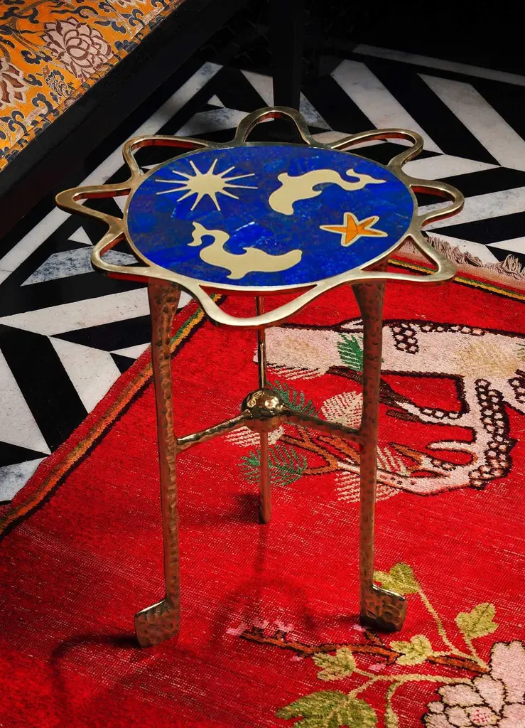 Pisces Side Table In Brass With Semi Precious Stones, Viya By Vikram Goyal