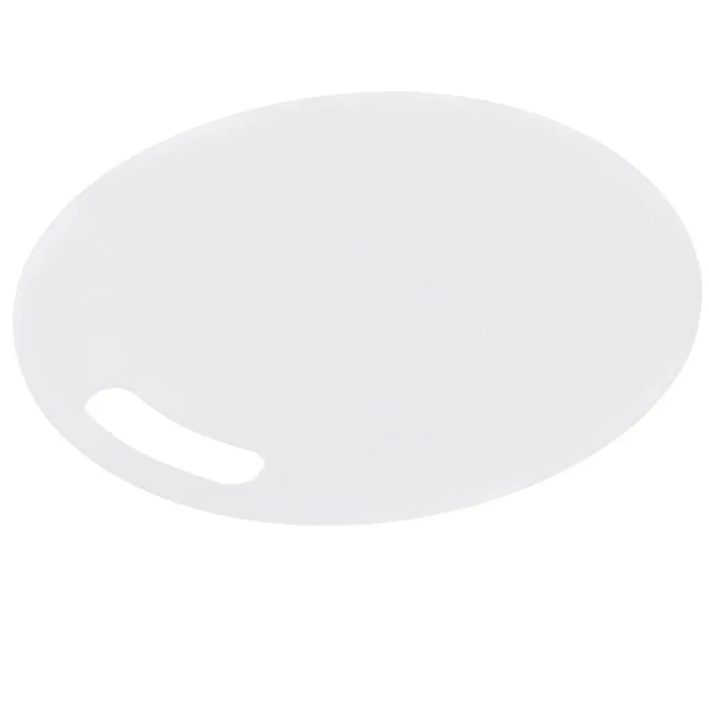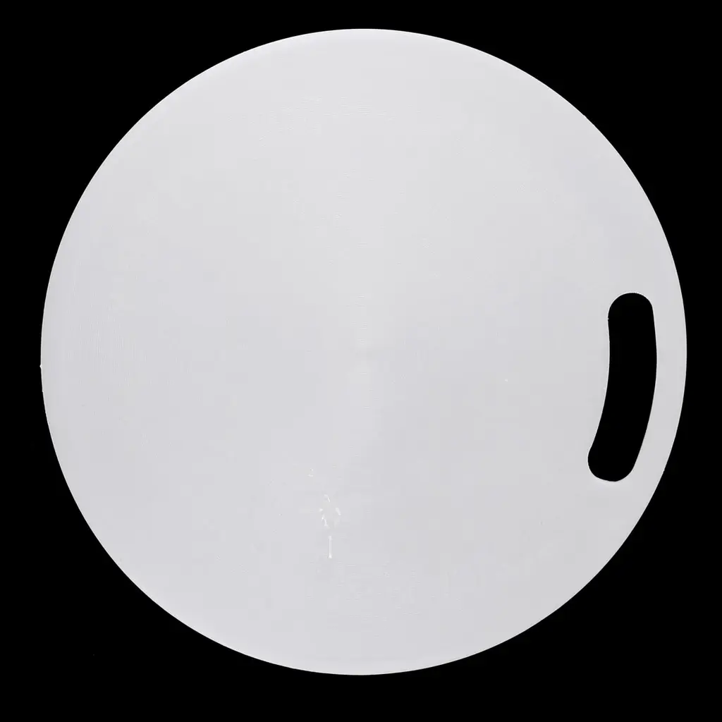 Color: White; Material: PlasticNet Weight: 214gPackage Content: 1 x Chopping BoardProduct Name: Chopping BoardTotal Size: 31 x 0.5cm/12.2" x 0.2"(D*T)Description:Round chopping board, made of plastic.Used widely for cutting fishes, meat, vegetables, fruits, etc. Ideal kitchen tool.Can be hang with a hole in order to keep dry and clean.You can choose the cutting board to cut many different types of food.