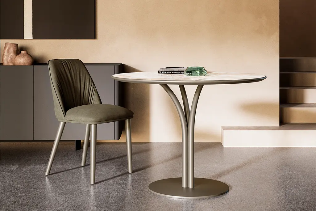 Antoine Fritsch & Vivien Durisotti combined different materials and techniques to create this collection that resembles the organic forms found in nature. The solid oak base is created by hand and the transparent Altuglass top is delicately engraved to resemble the veining of a cut log.