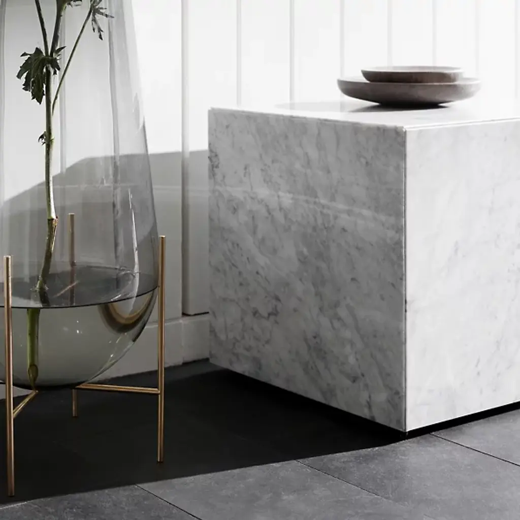 The Plinth Cubic Side Table from Audo Copenhagen, formerly known as Menu, achieves the objective of designer Norm Architects, creating a piece that is simple and extraordinary at the same time. The studio has sourced the finest marble in the world and treated it with the respect that it deserves; it's a material that has been maturing in the earth for millions of years and has finally been polished to highlight its absolute beauty. Clean geometry is all it takes to emphasize the staggering veins and textured formations displaying all around. It's a piece that tells a story, either as a side table, nightstand or podium.