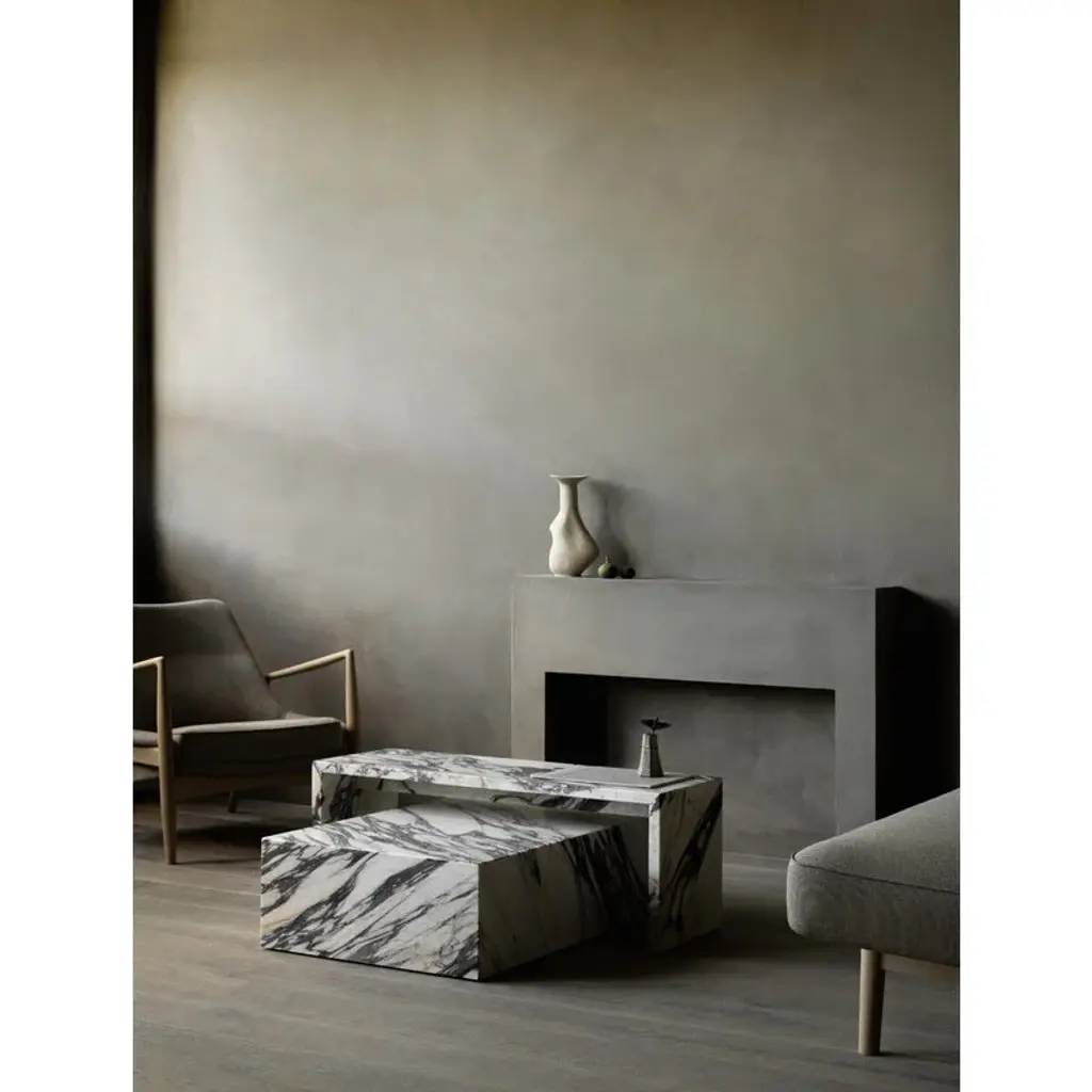 Audo Copenhagen’s timeless Plinth table crafted from marble is a versatile, practical conversation starter, guaranteed to catch the eye. Plinth can be used as a coffee table, a side table, or just simply as an impressive stand-alone element. The light-reflecting honed surface and the strict, geometric shape create an interesting contrast to the heavy, organic look of marble. Designed by Norm Architects, the Plinth collection celebrates the natural, elaborate beauty of marble. Every piece is an individual, made even more unique by patina over the years.