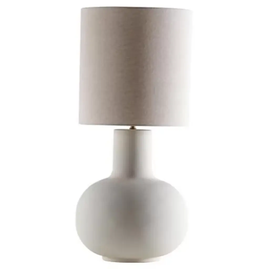 Plum & Post Charlie Mini Lamp - Gray Crackle Glaze - Linen Shade - 10"