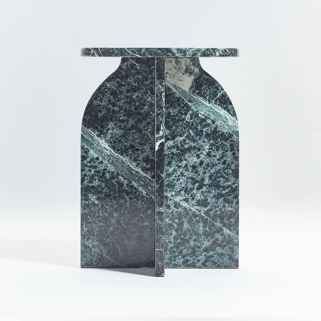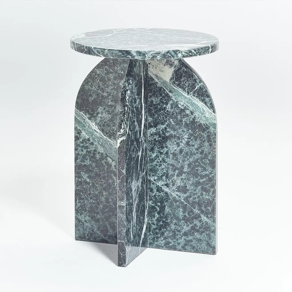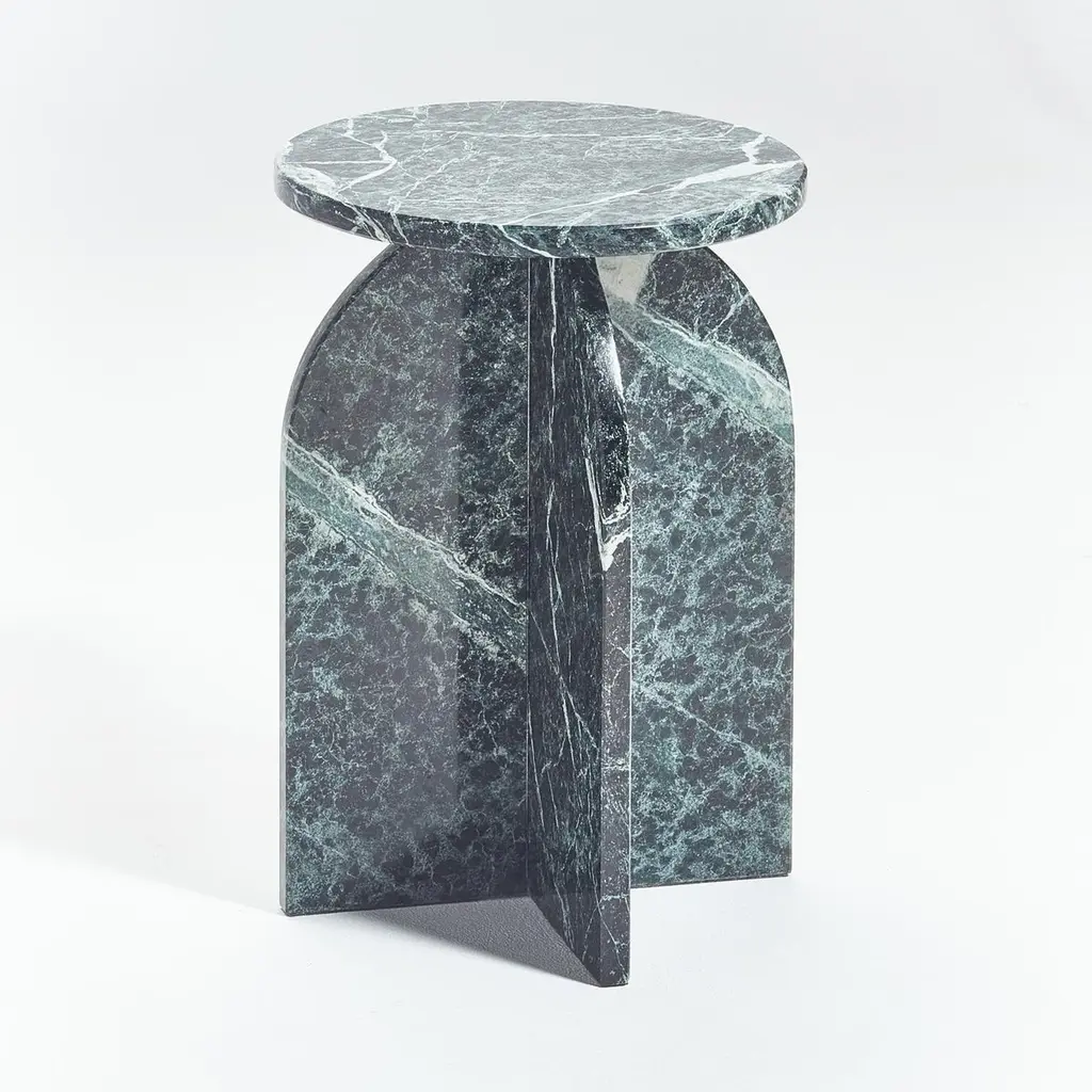 Plus Side Table In Green Marble, Stone Minimalist Side Table By Aparentment