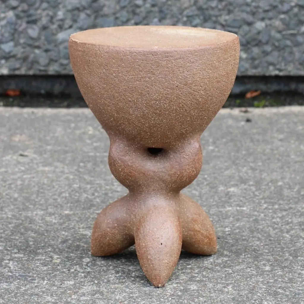 Podo side table by Abid JavedDimensions: D 30 x 50 cm (Dimensions are variable)Materials: Stoneware ceramicAvailable in multiple clay colour and size options.Handmade stoneware ceramic stool/side table hybrid object.Inspired by small-tailed viruses.Coiled hollow form with a non-glazed ceramic surface.Abid Javed is a ceramic artist, creating collectible ‘molecular objects’, using clay. With a background in Molecular Biology, the collections bring in the unseen world to the forefront. Subject matters explored include cells - molecules, together with Arabic script and geometry. All objects are hand-built, encompassing pinch, coil, and slab methods. Working in a range of clay, each piece is carefully crafted to bring a piece alive - emphasis on form and the clay-body. Therefore, each piece is a labour of love. The exploration continues through a series of sculptures and vessels.